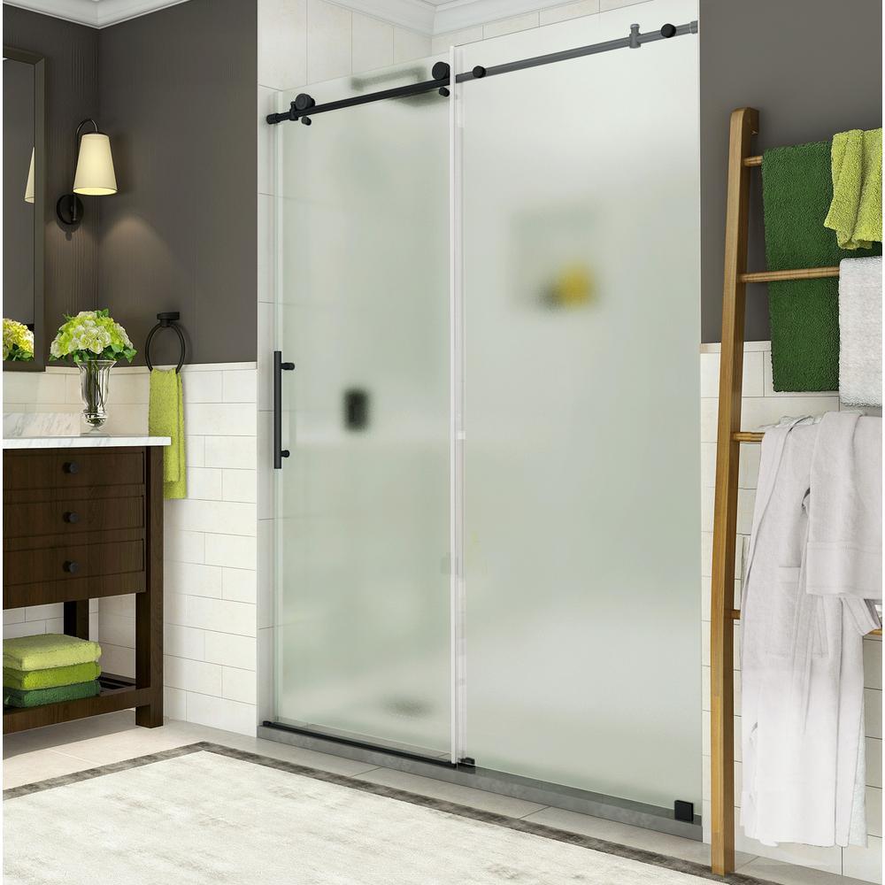 Coraline 56 in. to 60 in. x 76 in. Frameless Sliding Shower Door with Frosted Glass in Matte Black