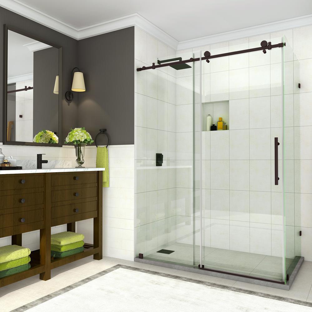 • 44 in. to 48 in. W x 33.875 in. D x 76 in. H frameless sliding shower enclosure