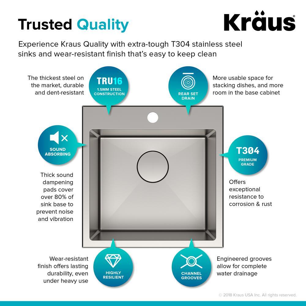 • Durable and dent-resistant sink made with premium tru16 real 16-Gauge T304 stainless steel