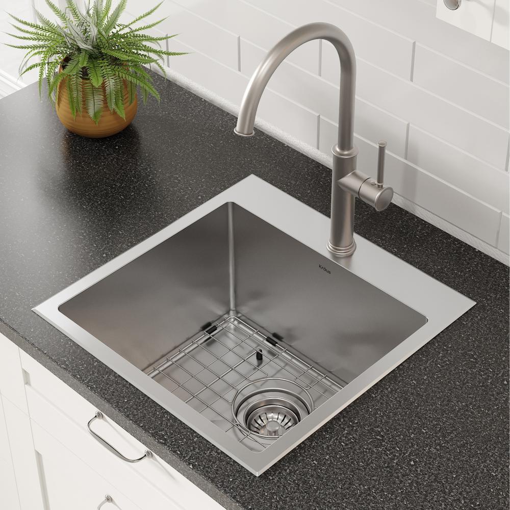 Known for outstanding quality, Standart PRO sinks are designed with straight walls and tight-radius corners to create a contemporary look in any kitchen. Built to impress with rugged T304 construction, wear-resistant finish, and industry-best NoiseDefend soundproofing technology, this KRAUS sink is designed to handle the toughest messes. Convenient drop-in sink design allows you to install with any type of kitchen counter. An extra-thick mounting deck sits flat against the countertop for a beautifully finished look