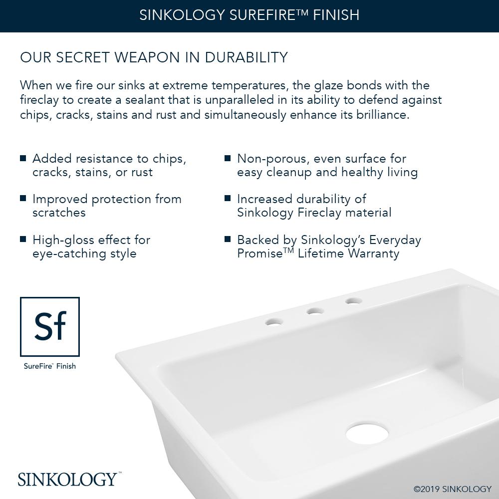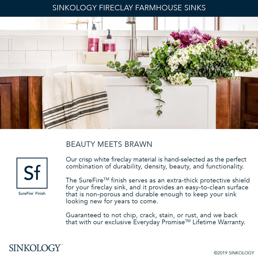 • Durability: SINKOLOGYs fireclay sinks are fired with temperatures that reach 2100°F to blend clay and glaze and create a dense, ultra-durable material