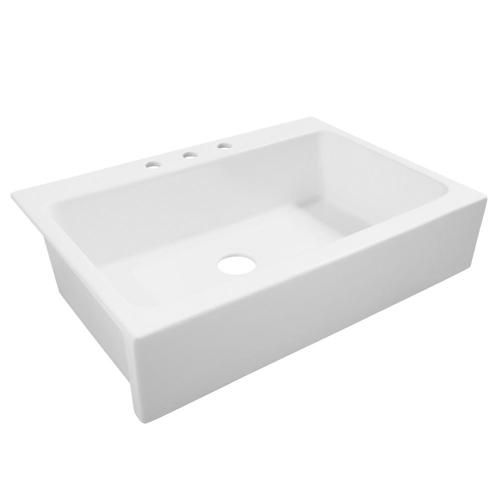 Josephine Quick-Fit Drop-in Farmhouse Fireclay 33.85 in. 3-Hole Single Bowl Kitchen Sink in Crisp White