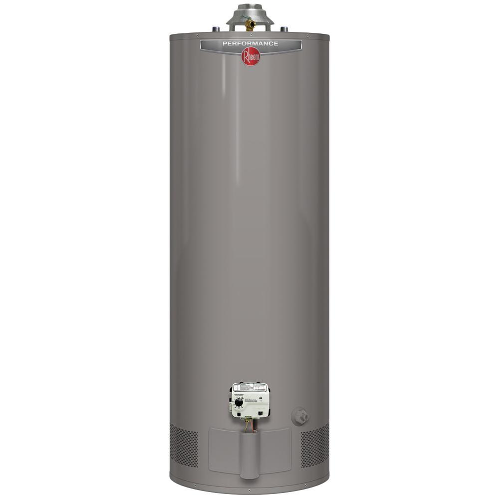 The Rheem Performance 40 Gal. Natural Gas Tall Water Heater comes with a 38,000 BTU/hour environmentally friendly low-NOx burner that provides ample hot water for households with 2 to 4 people. The push button ignition system ensures safe and easy startup. Its maintenance free combustion air intake system means there are no filters to clean and replace. The self-diagnostic gas control valve monitors system performance. A premium grade anode rod provides long lasting tank protection. Factory installed TOP mounted temperature and pressure relief valve and 3/4 in. water connections are included with the water heater for easy installation.