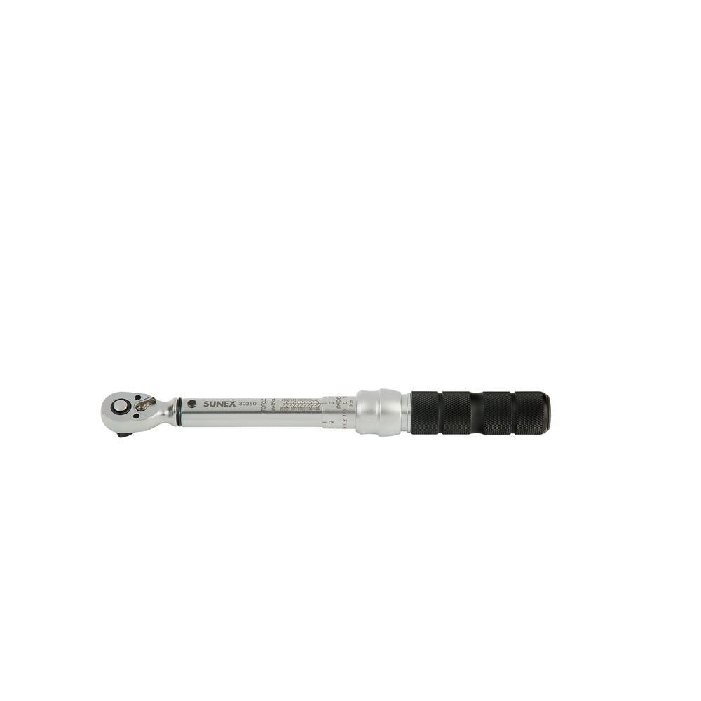 The Sunex 30250 3/8 in. Drive 50 in./lbs. to 250 in./lbs. 48T Torque Wrench has a 48 tooth ratcheting mechanism that is accurate to 3% clockwise and 6% counterclockwise. It is made of high quality internal components for professional performance and has a heat-treated tube with a knurled aluminum handle for a better grip. The Sunex 30250 is designed to signal the desired torque by an audible click and impulse. This torque wrench comes in a convenient storage case and includes a certificate of calibration.