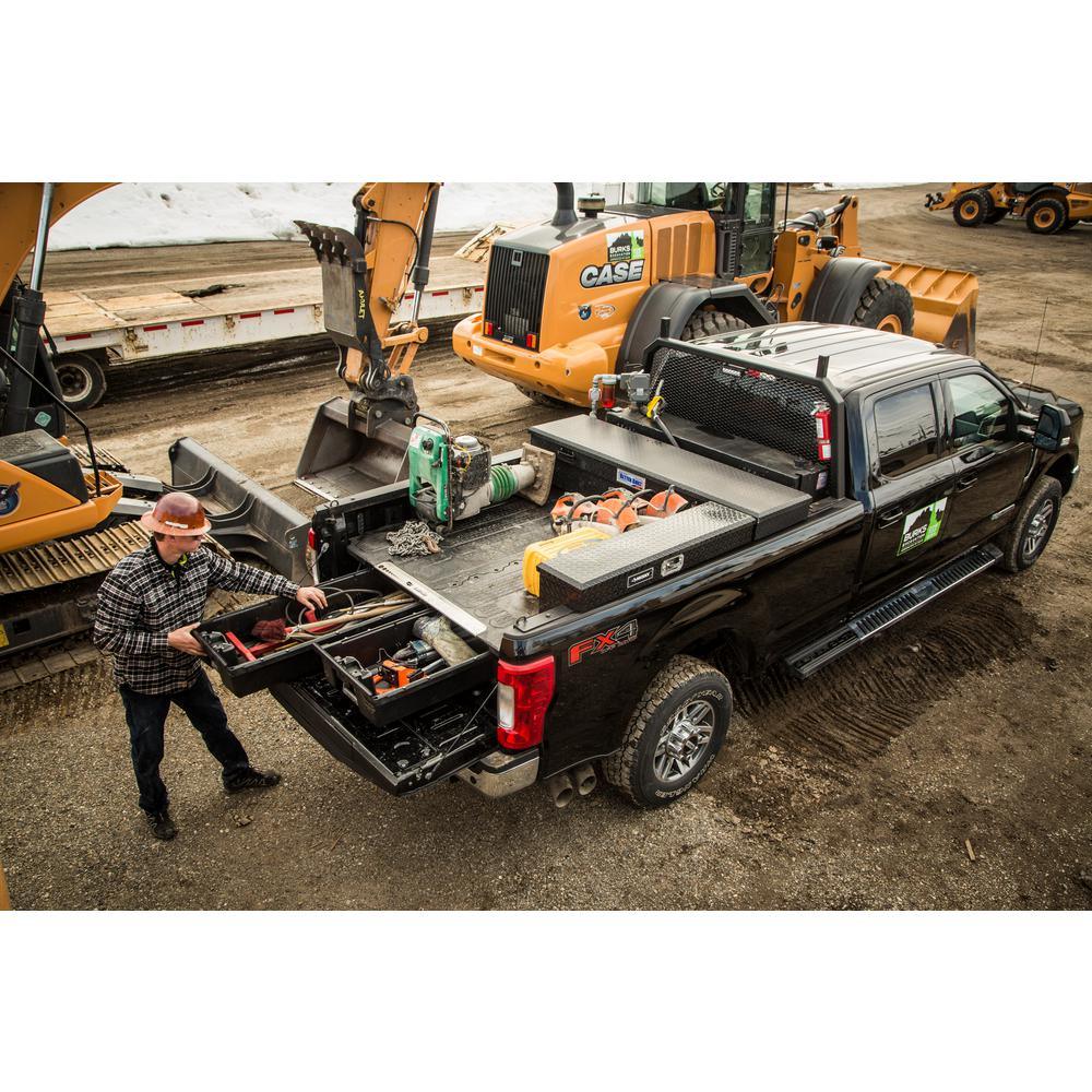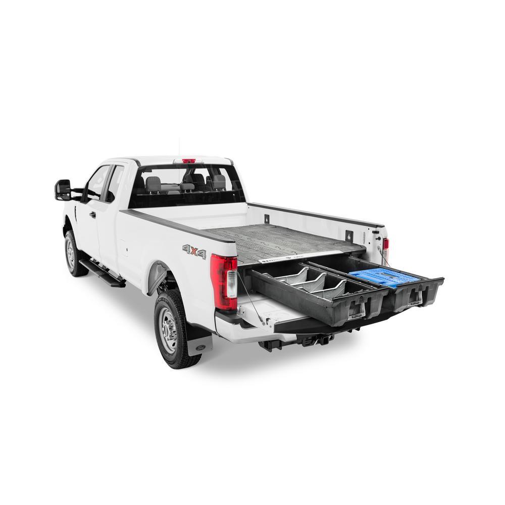 DECKED revolutionized Pickup Truck Bed Storage with a low-profile truck bed tool box system that is compatible with Ford, Dodge RAM, Chevy, GMC, Nissan and Toyota full-size trucks. 2 full bed-length drawers offer dry, secure storage with ergonomic access for tools, gear, guns, fishing rods and other items that slide out at waist height, while still allowing the owner full use of their truck or van bed. DECKED has a 2,000 lb. payload on the deck and 200 lbs. per drawer load capacity. Covered by 3-year warranty against product defects or failure due to workmanship. Further organization and customization is possible with optional nesting storage boxes, drawer dividers, tie downs and locks. DECKED Storage Systems are easy to install or remove, weatherproof, secure, and ergonomic. With a low-profile design the DECKED Storage System leaves plenty of room for further upfitting. DECKED Truck Storage Systems are perfect for small businesses like painters, carpenters, plumbers and handyman services. DECKED Storage Systems were also designed with the outdoors enthusiast in mind, allowing you to carry fishing, hunting or any kind of sports gear you can imagine. Note: drawers are not water or airtight, some fine particulate matter such as dust and water vapor may enter. Assembly and installation time approximately 2 hours. Removal/reinstall time approximately 15-20 minutes.