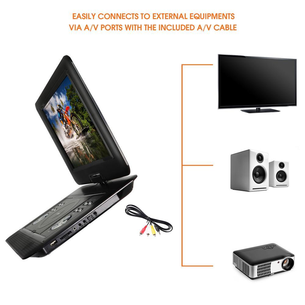 • Portable DVD player provides a 90° rotation to the left and a 180° rotation the right