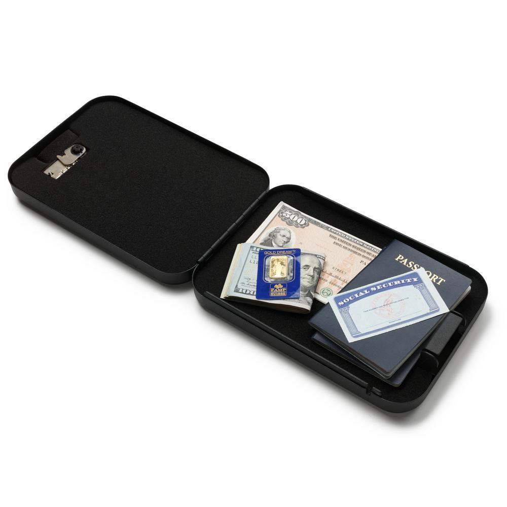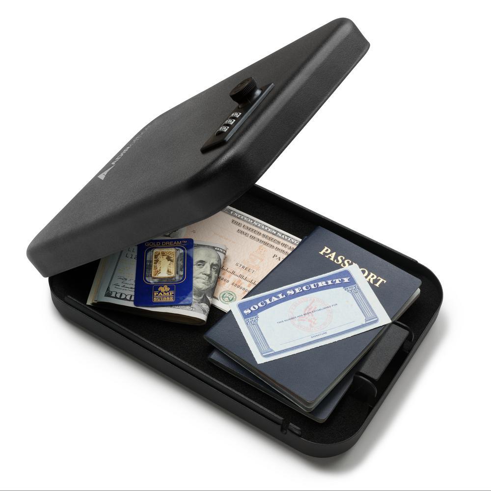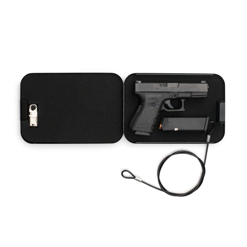 The AdirOffice Portable Travel Combination Lock Gun Safe is the perfect solution to storing a firearm when traveling. The safe can also be used to keep passports, cash, iPhones, credit cards, watches, and jewelry safe. The case is durably constructed using solid steel for long-lasting strength and features a scratch-resistant, black finish to make a professional appearance. On the interior, you will find 4-layer foam lining to protect firearms and other valuable contents from scratches and damage. The gun safe features a combination lock and an anchor cable for added security when attached to an immovable object.