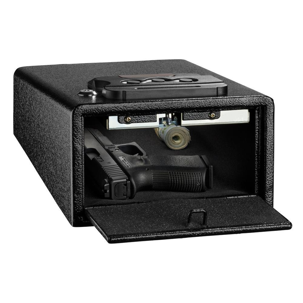 The AdirOffice quick access black digital gun safe is designed for safety and provides the best storage solution for firearms. The safe offers fast access for handguns and ammunition that can be placed at your bedside or anywhere else in the home. Solid, well-built construction resists mechanical intrusion, durably crafted utilizing solid steel to provide long-term strength and use for years to come. Foam-lined interior keeps firearms and other valuable items protected from scratches and other damage. The gun safe is also furnished with a spring-loaded access door that opens instantly when the battery-powered PIN code is entered correctly. If the code is typed incorrectly, the safe produces an alarm sound to scare off intruders who don't want to get caught. This feature is also ideal to keep young children away from a potentially fatal situation.