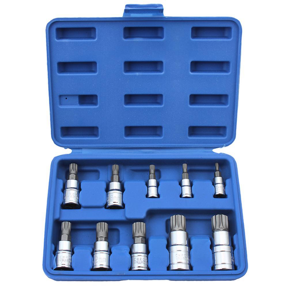 The stark XZN socket bit set features a 10-piece collection of triple square bit sockets to accommodate to the needs of professionals and DIY handyman. Each of our bit sockets is individually constructed by undergoing heat treatment and machine engineered to have superior strength and durability. Great when used to install, fasten, tighten or remove fasteners and nuts. These spline socket bits are designed to withstand both high torque and force without twisting and distorting in shape. This multi-purpose spline socket set is compatible for a broad variety of workshop and handyman projects.