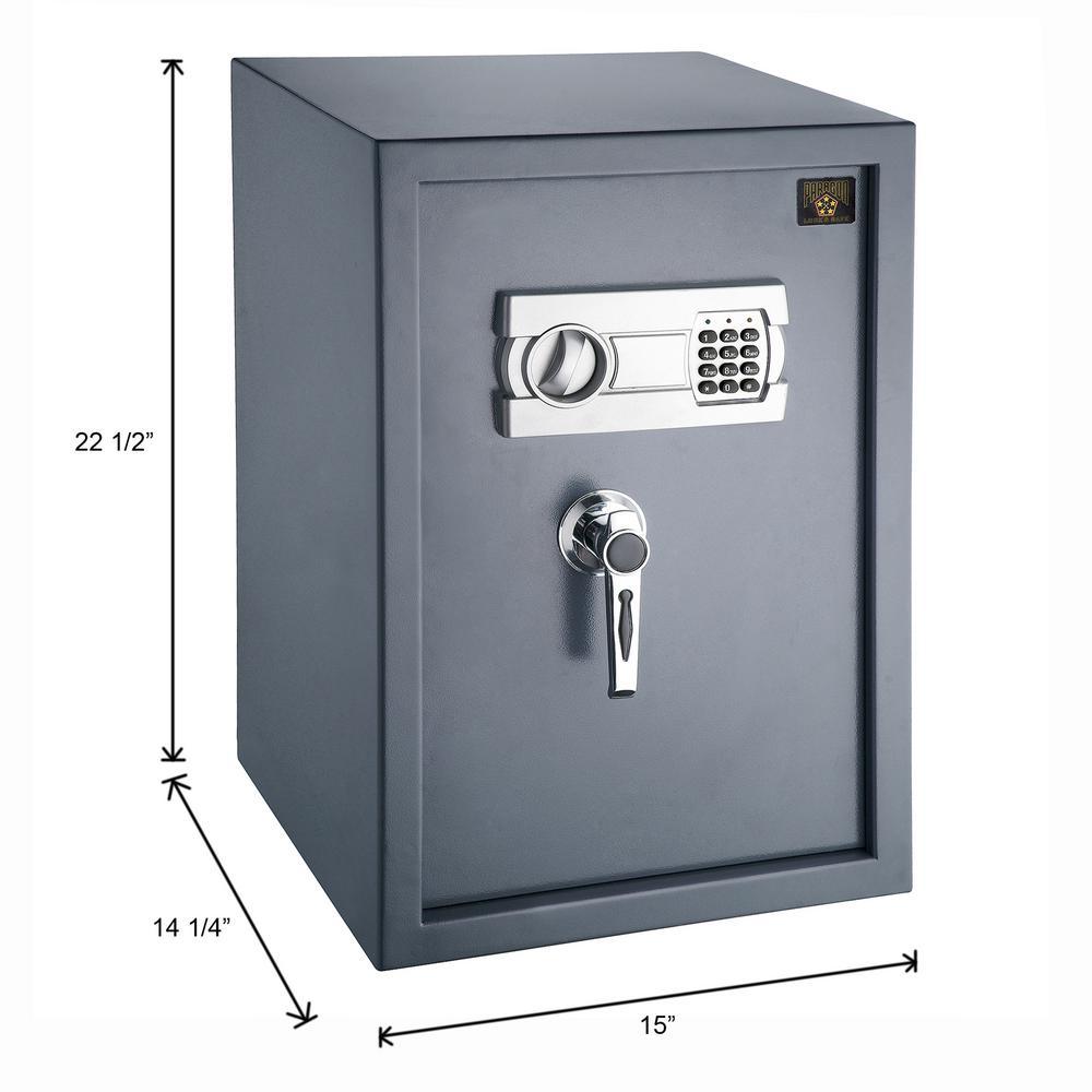 The Deluxe Electronic Digital Solid Steel Safe by Paragon stores and keeps valuables safe at home or office with this digital safe, works with included key or your own customized digital code you program. For added security, we've made the hinges concealed so they're tamper-proof. It is perfect for the home, office or work place.