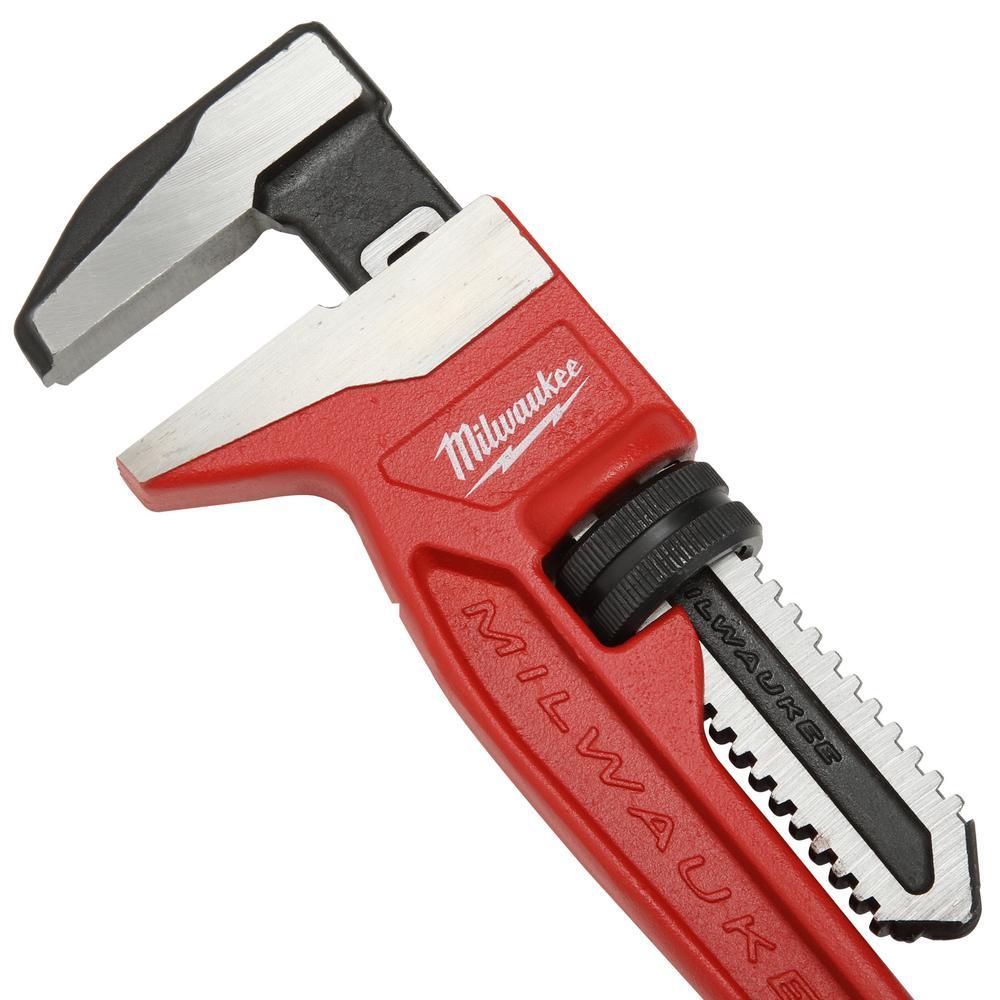 The Milwaukee 12 in. Smooth Jaw Pipe Wrench has been designed from the ground to offer maximum productivity to professional users. The pipe wrench features smooth jaws with a 2-5/8 in. capacity that protects surfaces, especially when working with chrome. The 12 in. smooth jaw wrench has a parallel grip that stays secure while being used. The wrench's ergonomic handle form has been designed to offer maximum comfort and wont dig into users' palms while in use. Milwaukee stands behind their product and offers a Limited Lifetime Warranty with all smooth jaw pipe wrenches.