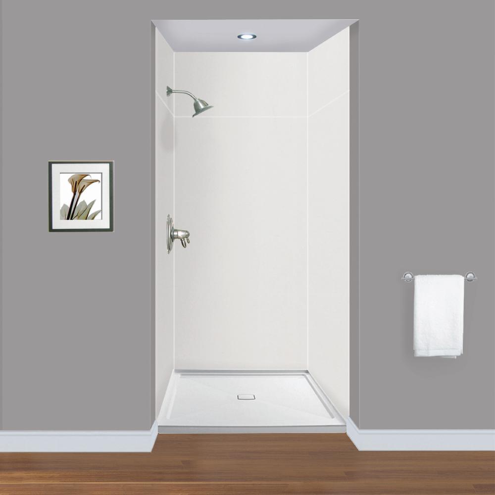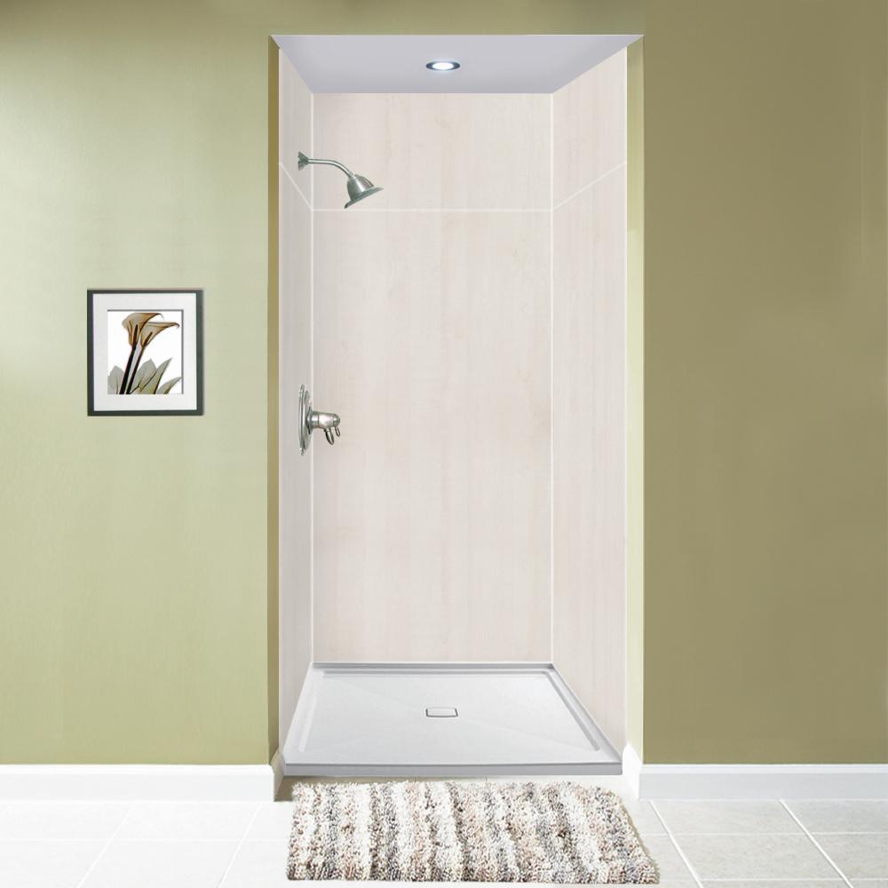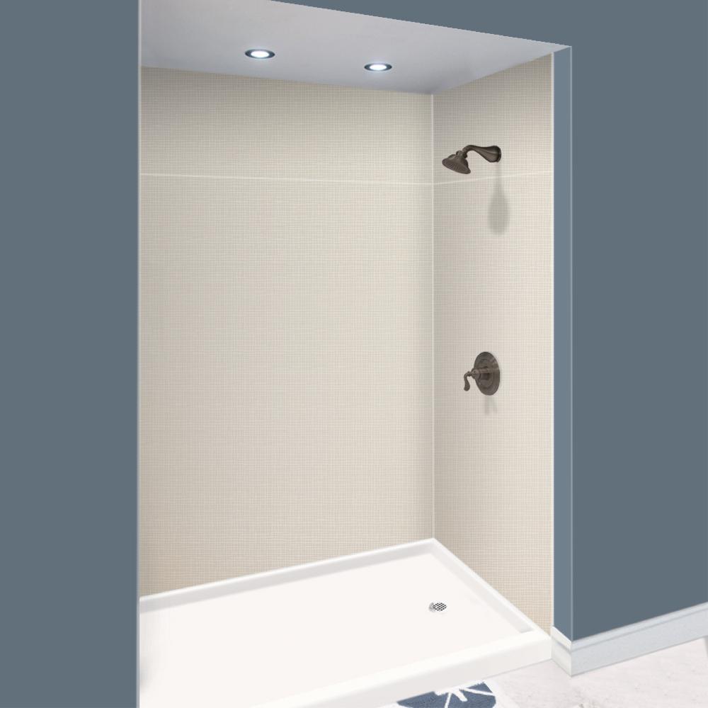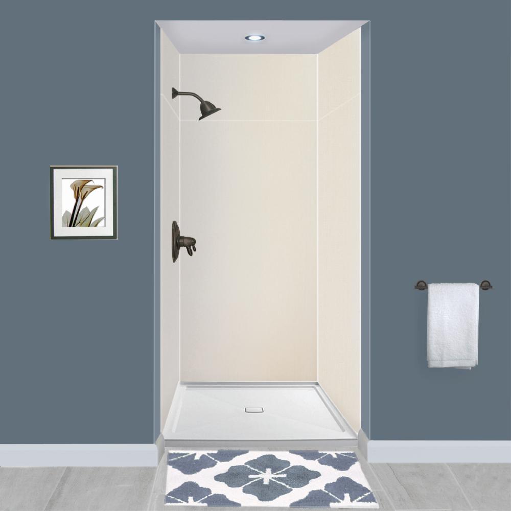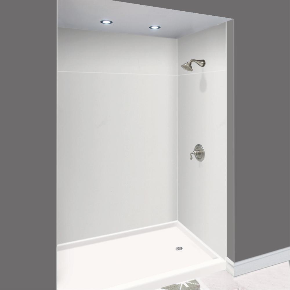 Expressions 48 in. x 48 in. x 96 in. 4-Piece Easy Up Adhesive Alcove Shower Wall Surround in Bianca