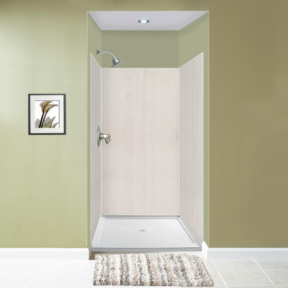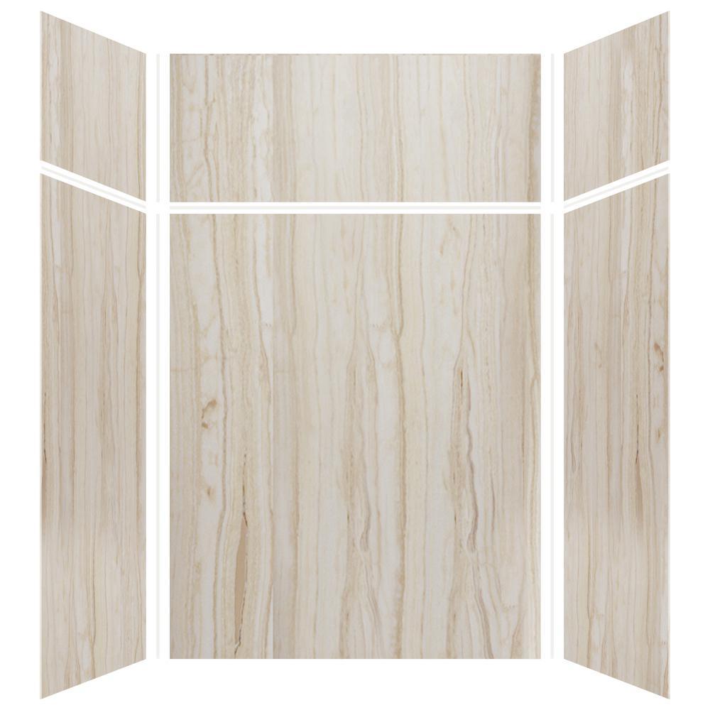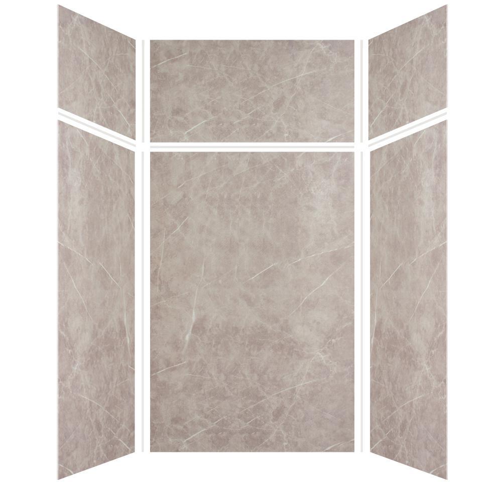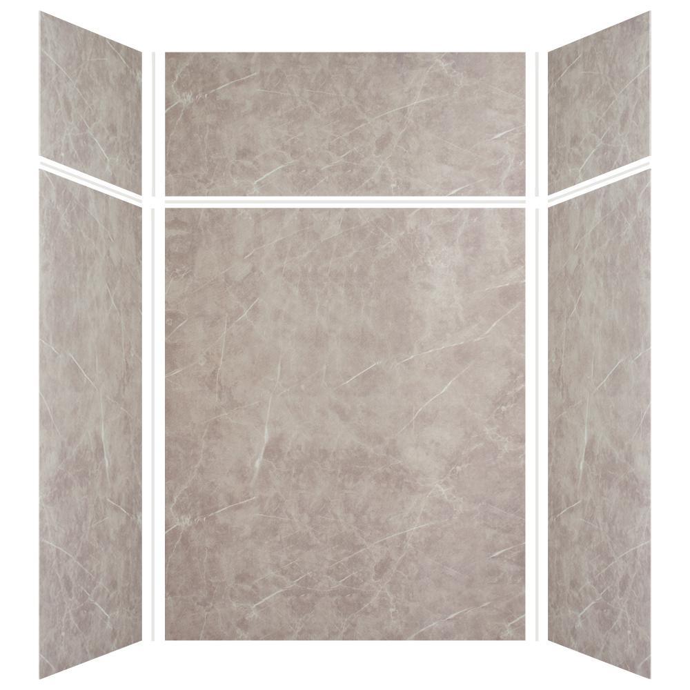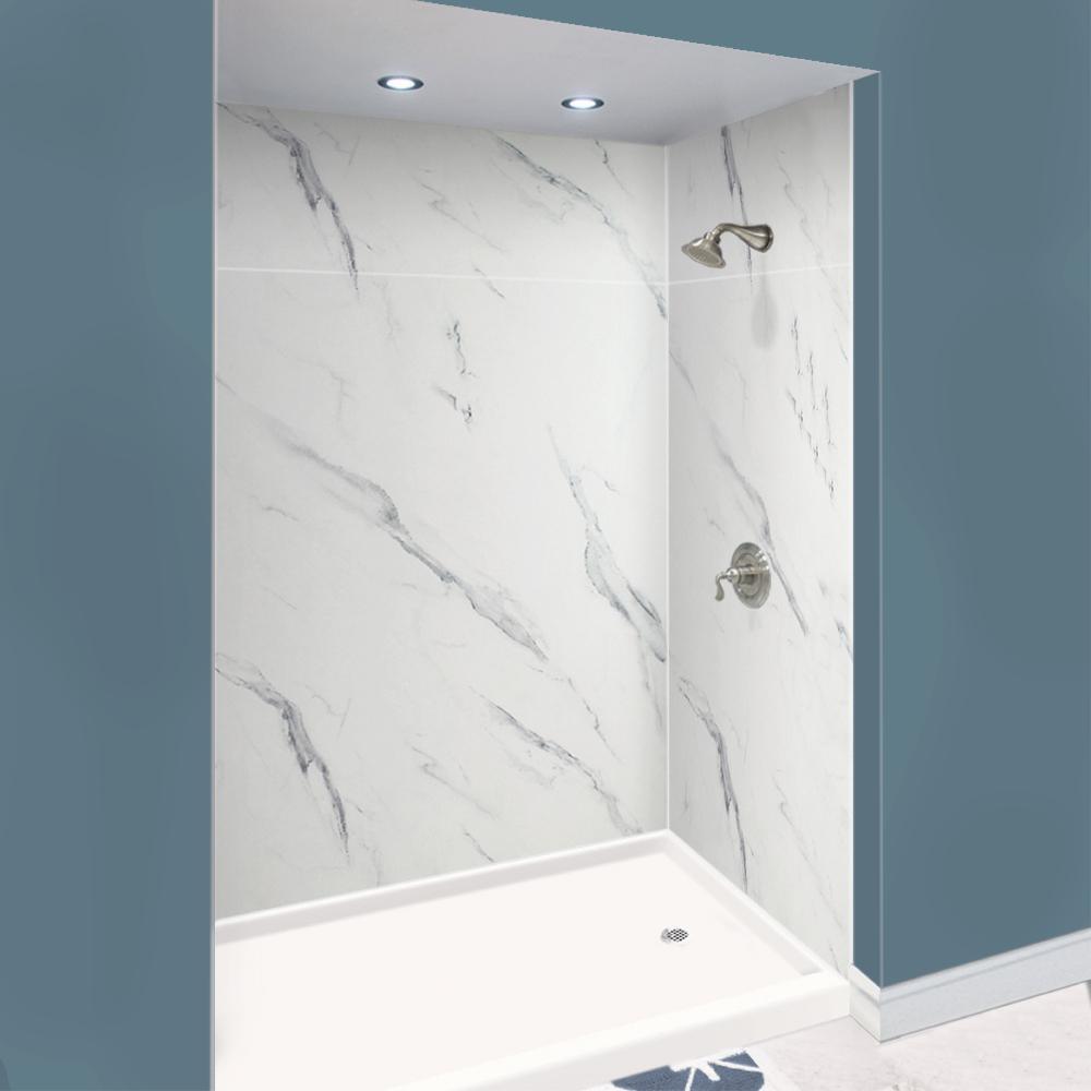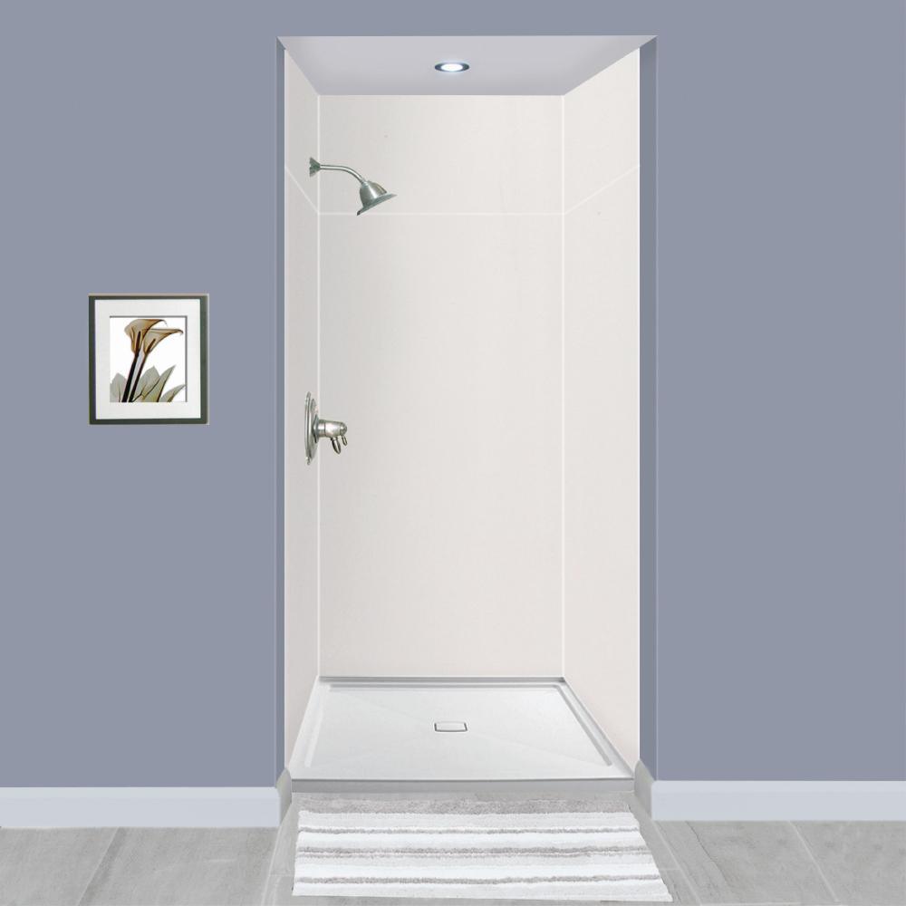 Expressions 48 in. x 48 in. x 96 in. 4-Piece Easy Up Adhesive Alcove Shower Wall Surround in Bianca