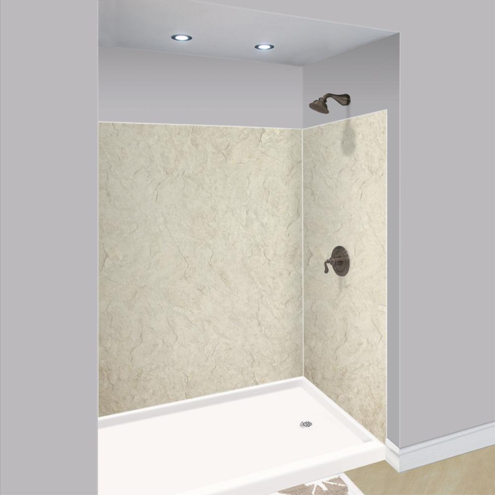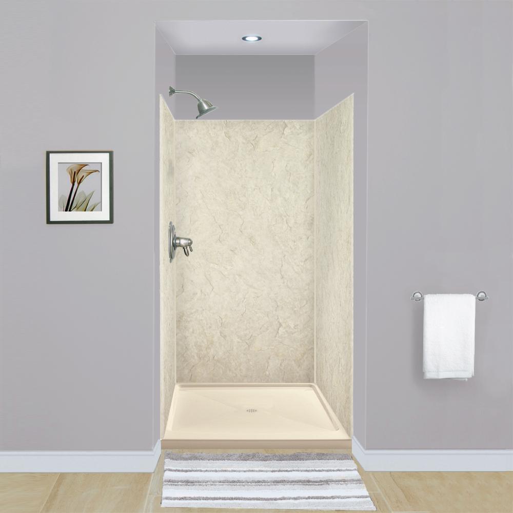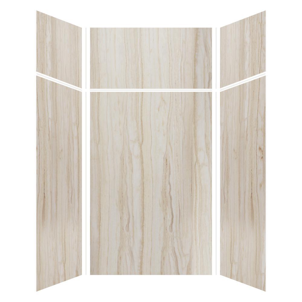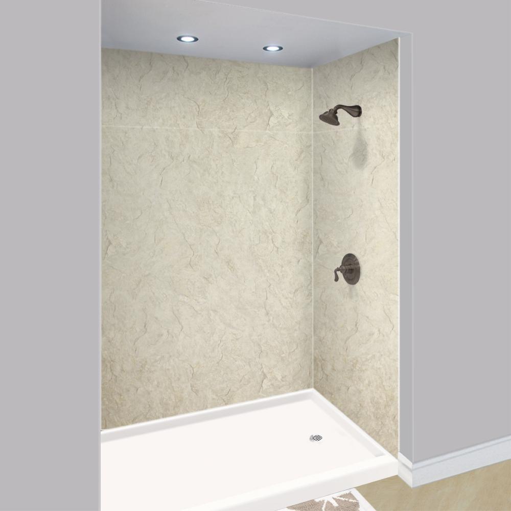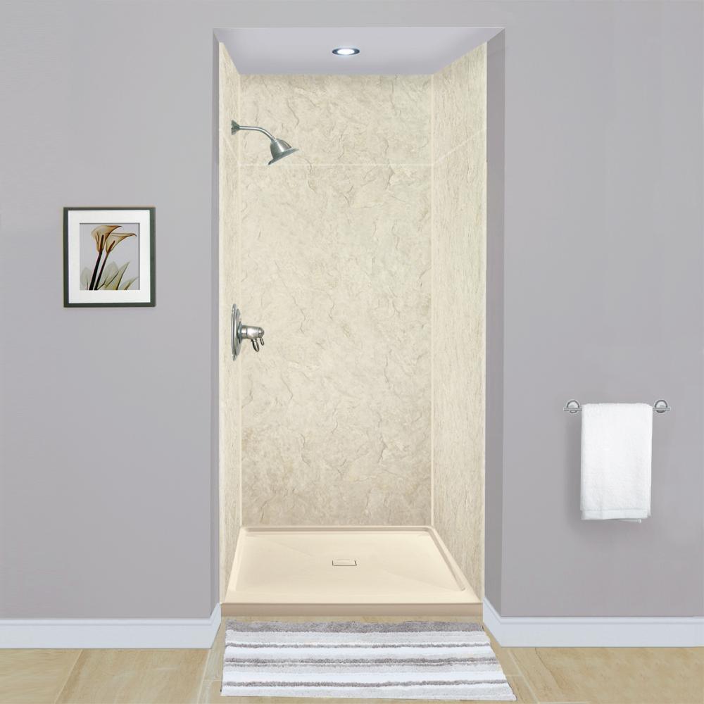 Expressions 48 in. x 48 in. x 96 in. 4-Piece Easy Up Adhesive Alcove Shower Wall Surround in Bianca