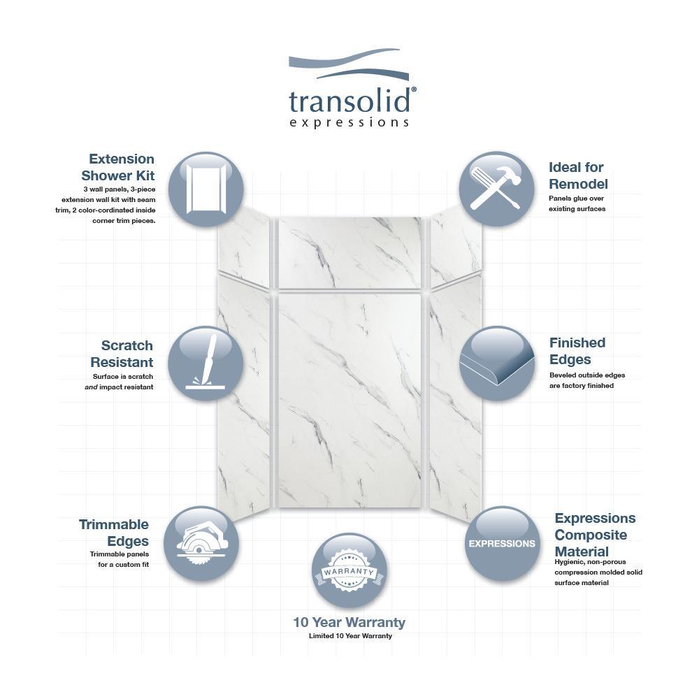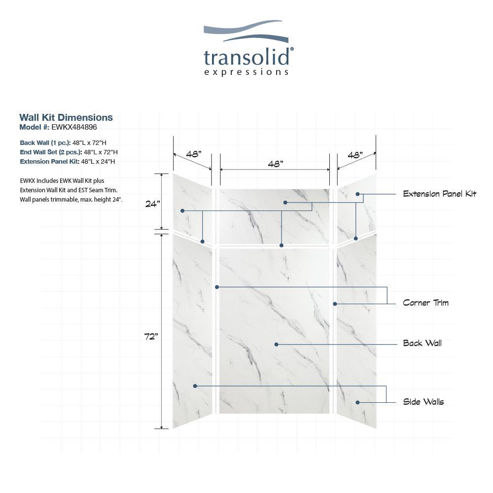 • Kit includes 3-piece wall surround, 24 in. extension wall kit with seam trim, 2 inside corner trim pieces, and 4 tubes silicone adhesive