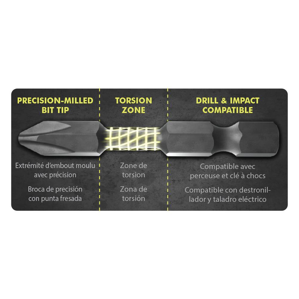 • Green band on bits makes it easier to find on the jobsite and in your toolbox