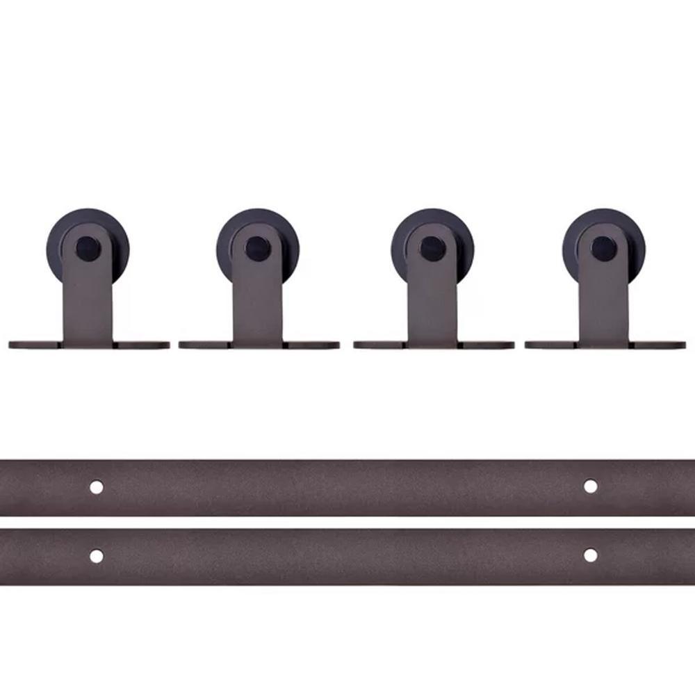Top Mount 144 in. Antique Bronze Double Track Barn Door Hardware Kit