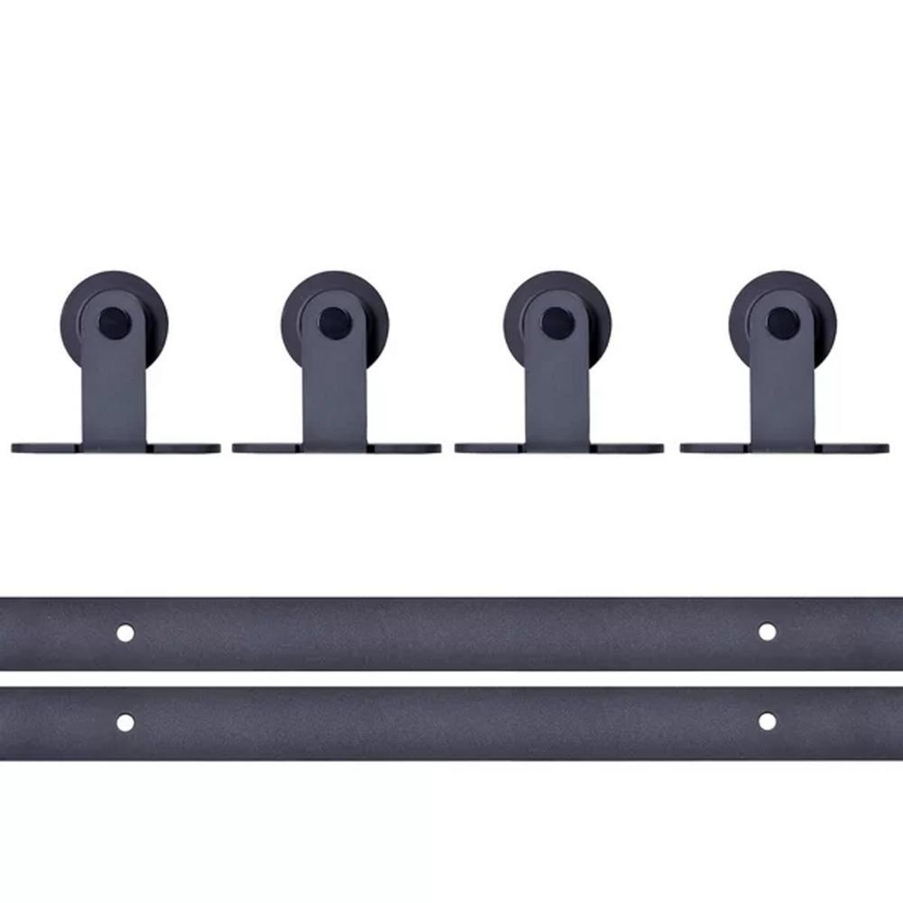 Top Mount 144 in. Matte Black Double Track Barn Door Hardware Kit