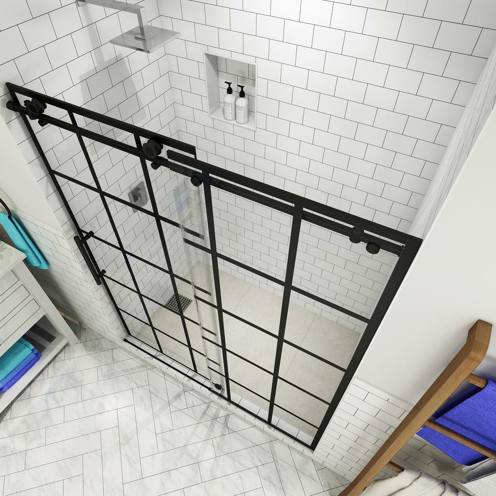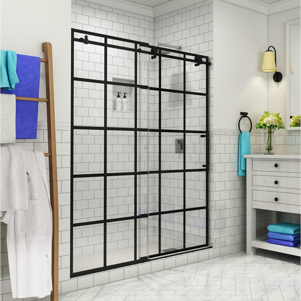 The Aston Kamaya Frameless Sliding Alcove Shower Door provides your bathroom with boho-chic industrial styling and space saving functionality. Its frameless style and Blockpress mullion screening craftsmanship provides a complementary, bold statement to your bathrooms decor. Ready to install with the most common sized alcoves, its 2-wheeled effortless gliding door is ideal for any shower space. At 76 in. in height, the Kamaya Sliding Shower Door comes complete with premium, 3/8 in. (10 mm) tempered clear glass with professionally applied interior StarCast glass coating that ensures lasting clarity, stain protection and low-maintenance care. The Kamayas eye catching matte black hardware will transform your current alcove to an elegant showering destination.