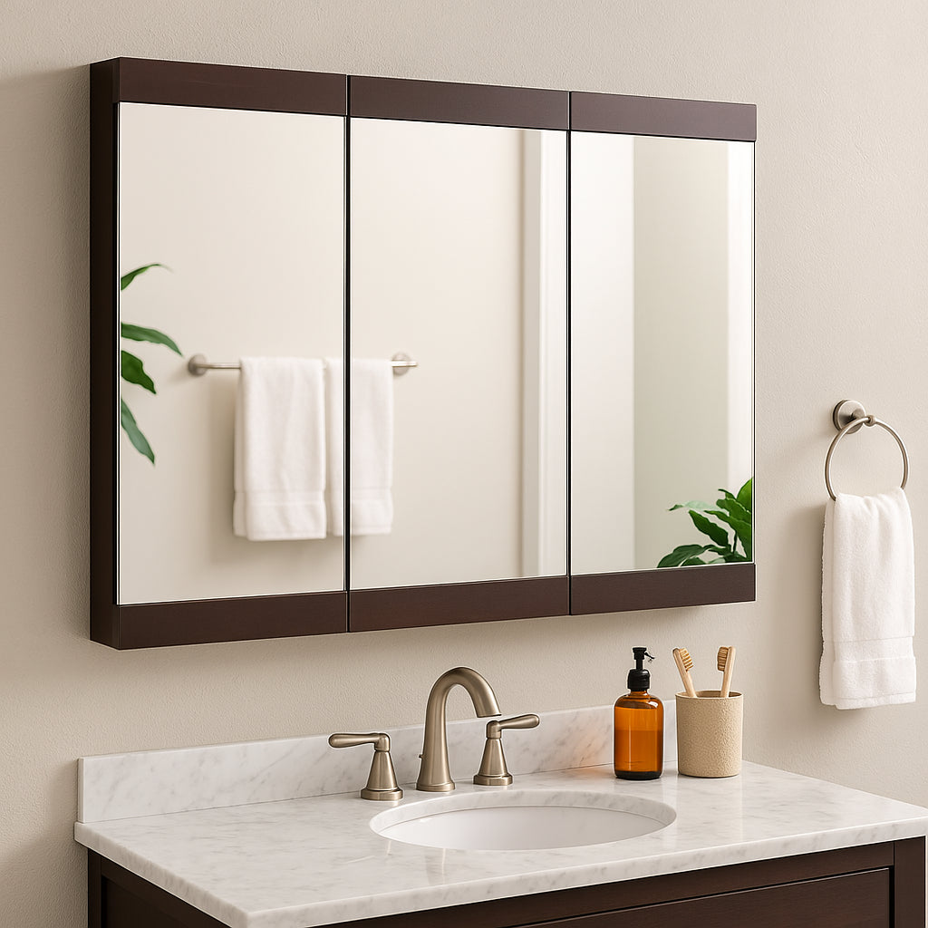 Home Decorators Collection Fog-Free Tri-View Medicine Cabinet in Java