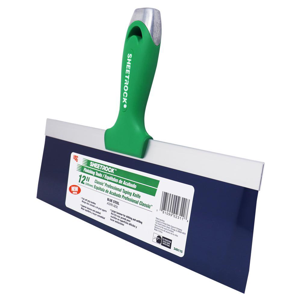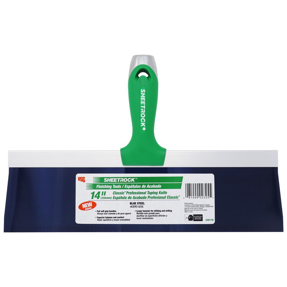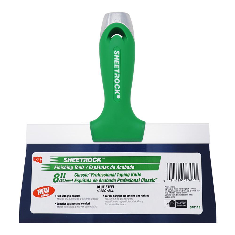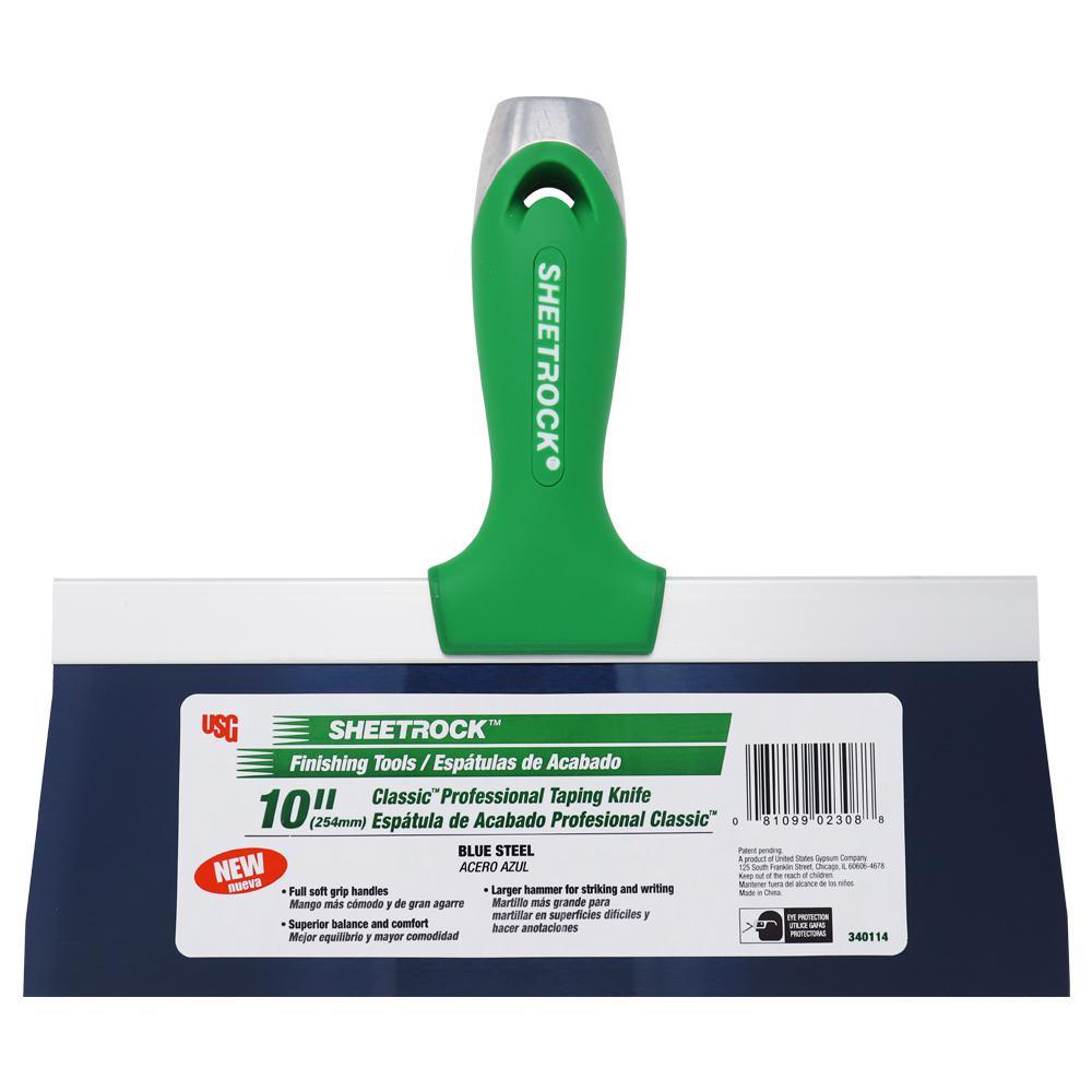 Sheetrock Tools Blue Steel Professional Finishing Knives have blue steel blades for those who prefer it's more flexible build. The knife's tapered neck and soft grip provide maximum comfort. The premium handle is also engineered with an enlarged hammer for striking and writing, reducing the need to carry additional tools on the job.