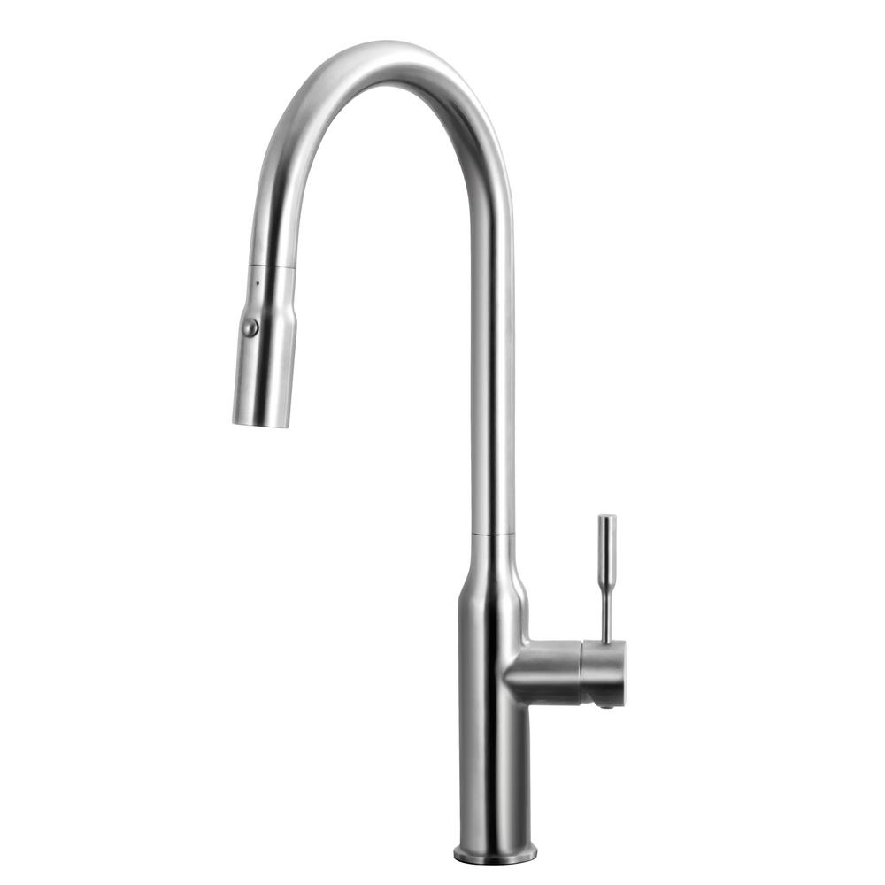 - Includes solid 304 stainless steel and lead-free pull-down kitchen faucet, 360° rotation spout, 90° rotation single handle operation, dual-function spray head