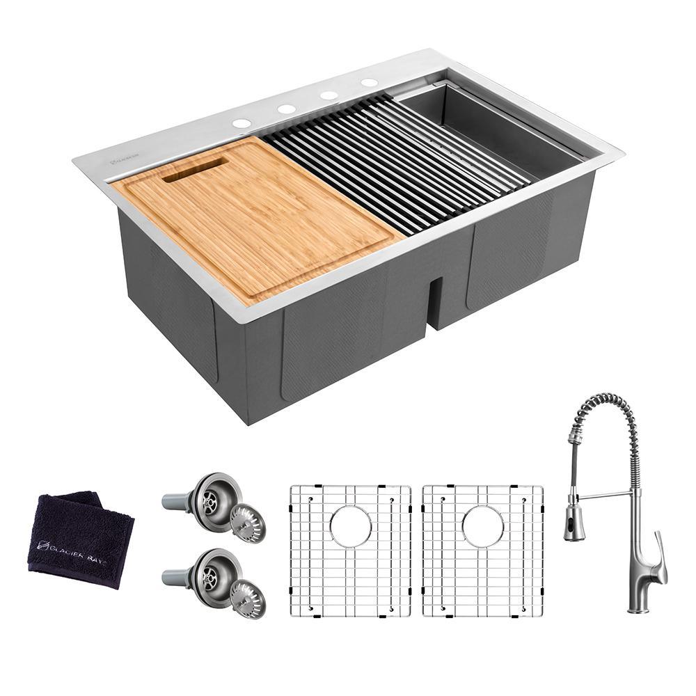 If you enjoy cooking like a professional chef, then this is the sink for you. Its extra-large bowl area is generously sized for any food preparation or clean up that you could undertake in your kitchen and features a set of accessories including: cutting board, colander, roll mat, bottom grid, and hand-towel. This commercial-grade sink is handcrafted from high quality, virgin 304 18-8, heavy gauge stainless steel and is sound insulated with noise absorbing pads plus under spray insulation, this sink is built to last.