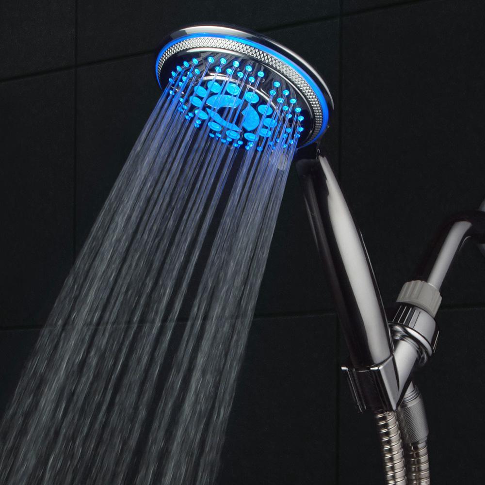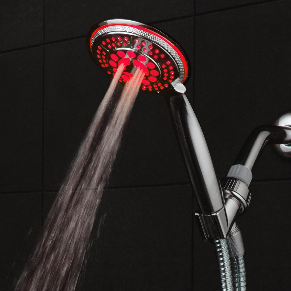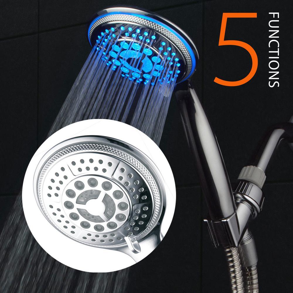 The DreamSpa all chrome LED shower head will change color based on the water temperature in your shower. You can enjoy the 5 luxurious settings and 3 vibrant LED colors while you shower. The large 4 in. chrome face will give you a wide body spray coverage and the angle adjustable overhead bracket will allow you to adjust the water flow to your preference. A premium flexible stainless-steel hose is included and you can connect your new shower head in minutes without tools.