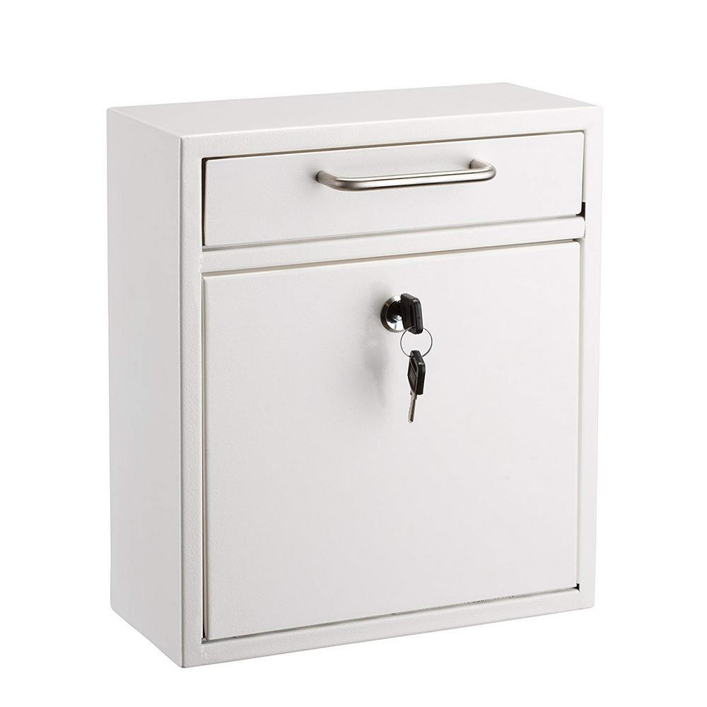 Constructed from durable, heavy-duty 16-Gauge galvanized steel, the AdirOffice Ultimate Drop Box Wall Mounted Mail Box is designed for holding keys, cash, envelopes or other important materials that need to be kept for safety purposes. This wall mounted mailbox is great to use for a variety of establishments like retail stores, military facilities, rental facilities, customer service counters, auto dealers and other facilities. With long-lasting strength, the AdirOffice Mail Box is built for security. It features an anti-fishing bin door and an anti-pry latch locking mechanism that prevents theft. Its locking access door features a commercial grade 12-disc wafer lock and 2 laser cut keys that secure the items in place. This powder-coated, scratch-resistant finish mailbox is the most convenient solution for after-hour drop box applications like night drops, key drops, payment drops, interoffice mail and the like.