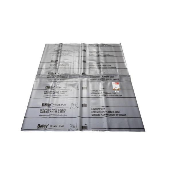 The choice for plumbing professionals, this 6 ft. x 10 ft. Oatey 40 mil PVC Shower Pan Liner is an economical, flexible liner designed for use in tile showers and other concealed waterproofing applications. Sized and ready to use on installations up to (5 ft. x 9 ft.), this shower pan liner is great for new construction and remodeling jobs. It is marked every 6 in. for accurate measuring and cutting and includes a 1- year-limited warranty.