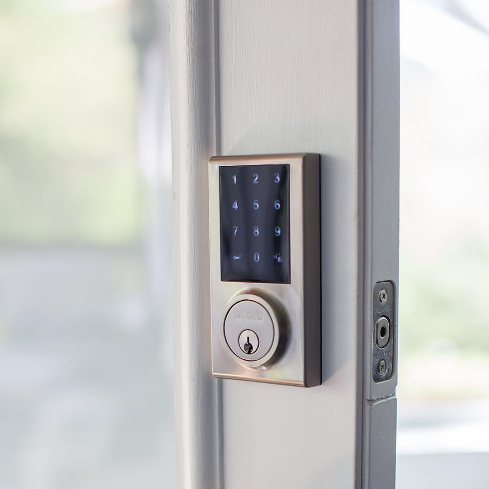 Delaney’s Z-Wave Touchscreen Smartlock provides the ultimate convenience and security of managing entry to your home from anywhere 24/7 monitoring using Delaney’s smart home control app. Our Smartlock solution not only can make your home more efficient and safer, but also it can be the base of your smart home ecosystem by connecting to any of the 1,000 Z-Wave Plus devices on the market. The Z-Wave (ZW300) Smartlock is an elegant, easy-to-install unit with a back-lit touchscreen for nighttime visibility. This high-security lock solution provides peace of mind for all levels of technology users by offering 3 methods of entry (code, smart home app or key). The super sleek design is also available in multiple finishes to fit the style of your home.