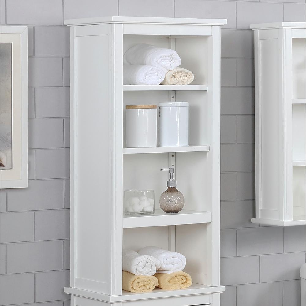 The Dorset collection of bathroom storage furniture is a perfect complement to any bathroom decor. This stand-alone hutch features open shelving to store your toiletries or highlight bathroom accessories. It can be used alone or paired with a coordinating collection of floor cabinets. Add extra storage space without taking up too much room. Classic design fits in with many styles of decor.