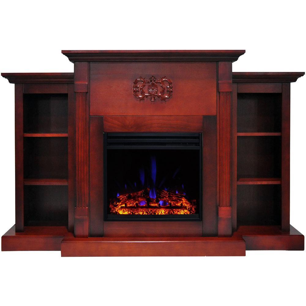72 in. electric fireplace heater with built-in bookshelves and enhanced multi-color flame display