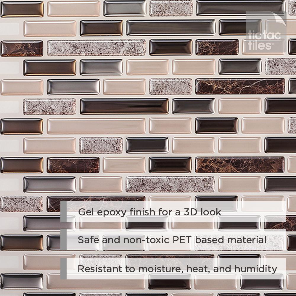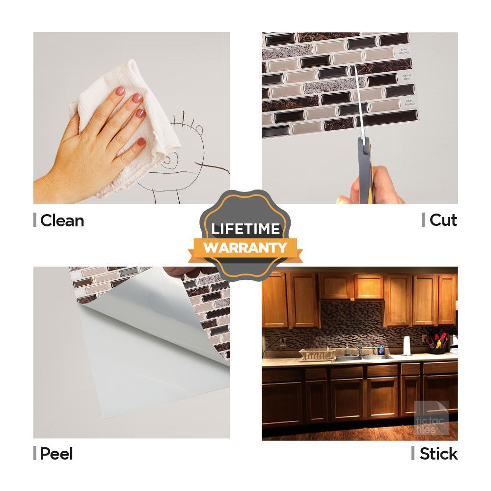 Refresh the look of your home with peel and stick backsplash tile by Tic Tac Tiles. Just install them directly over existing panels and smooth surfaces for a bright new look. These eco-friendly tiles are bacteria- and mold- resistant and perfect for kitchen and bathroom backsplashes. They're also resistant to stovetop heat and bathroom humidity. Just peel and stick to add durable style to your home with no hassles. Lightweight and easy to maintain, they'll remain on your walls for as long as you want them to be.