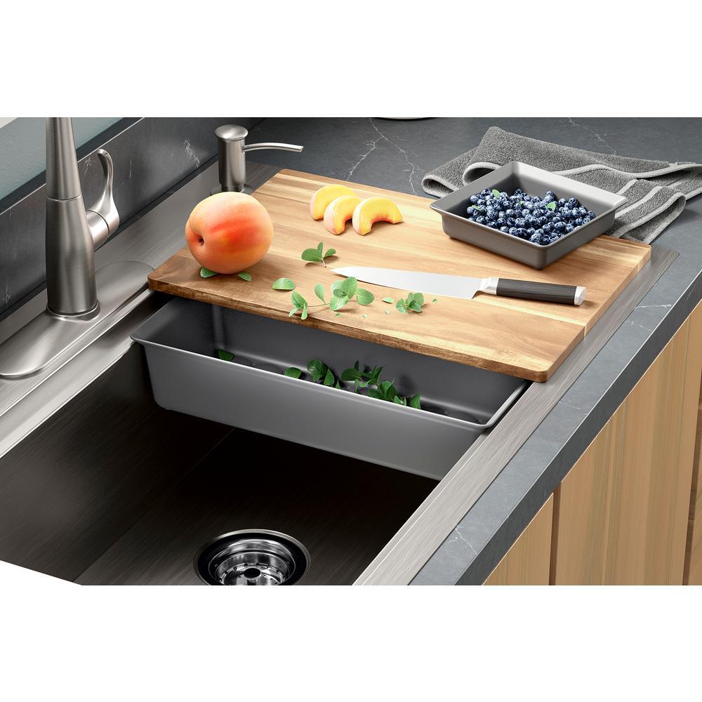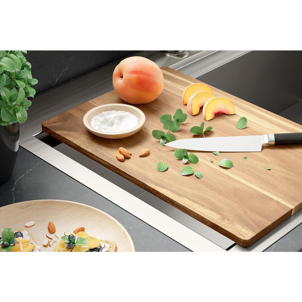 • Cutting board slides across the countertop when sink is under-mounted