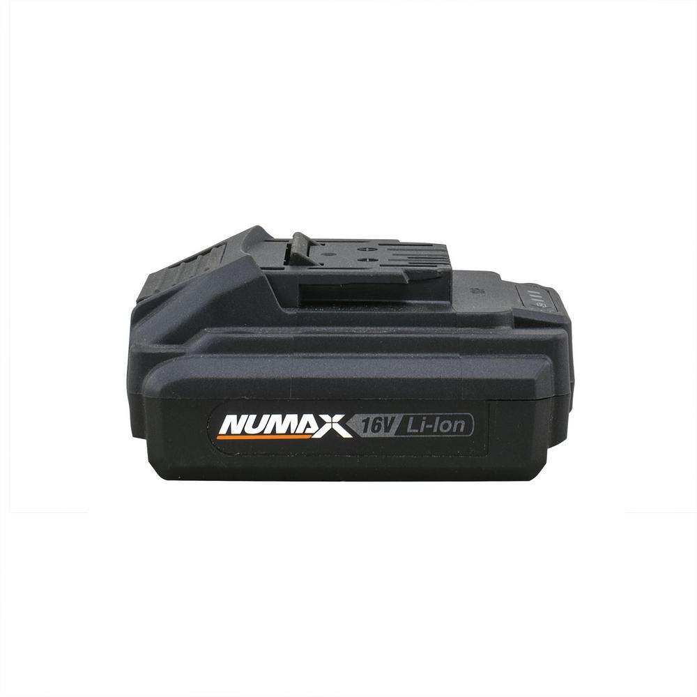The NuMax S16VRB 16-Volt 1.5 Ah lithium-ion Replacement Slide Battery for Cordless Tools is specifically designed as a power source for cordless tools, allowing you to complete projects around the home and job site fast and easy. This 16-Volt battery is compatible with NuMax's SH16VIPK Portable 16-Volt Cordless Power Inflator and Air Pump Kit with Case and S16VCH 16-Volt Electric lithium-ion Quick Battery Charger. Completely charge this consistent and reliable 16-Volt lithium-ion battery in 45-minutes or less and have extras charged and ready to avoid delays while working. 3 indicator lights provide a visual indicator of the charge remaining in the battery, while overcharging and overheating protection extend the life of the battery. A lightweight and compact design delivers maximum functionality even in tight spaces. The 16-Volt 1.5 Ah lithium-ion Replacement Slide Battery for Cordless Tools will allow DIYers as well as professional construction contractors to get more done in less time by supplying long-lasting power for their 16-Volt cordless tools.