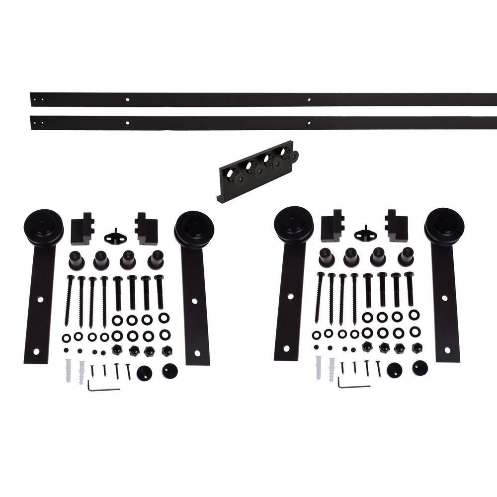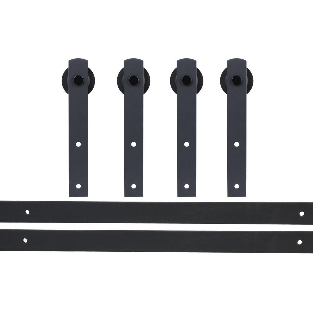 144 in. Matte Black Classic Straight Strap Sliding Barn Door Hardware (2-Set)