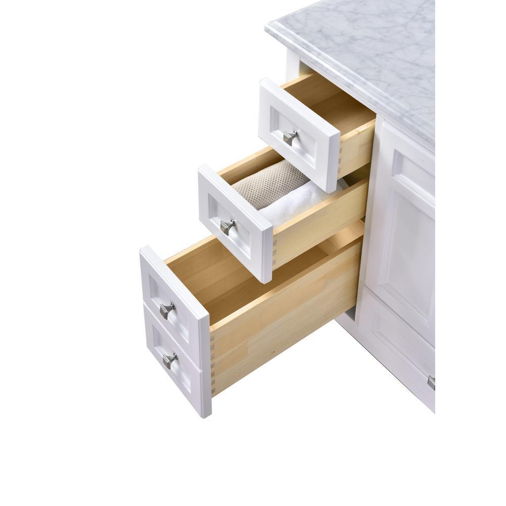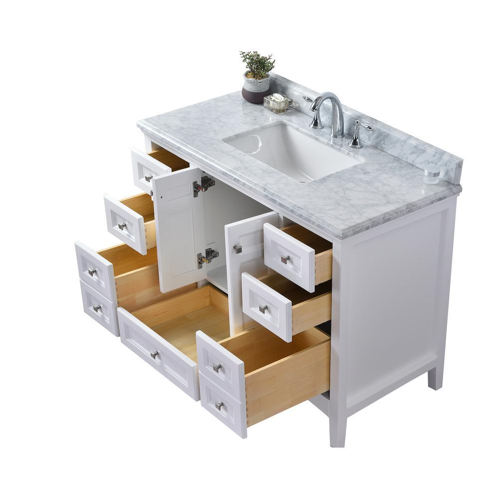 The 42 in. Luz single sink bathroom vanity will be the centerpiece of your bathroom remodel. Constructed of solid hardwood to last a lifetime. Seven solid wood dovetail drawers, with full extension glides to store all your toiletries, coupled with beautiful authentic Italian carrara marble will set your bathroom apart from others.