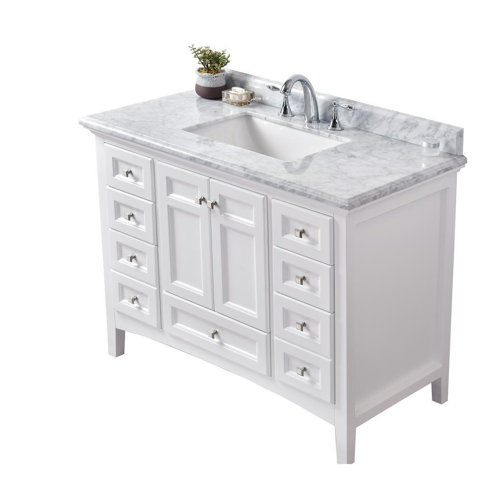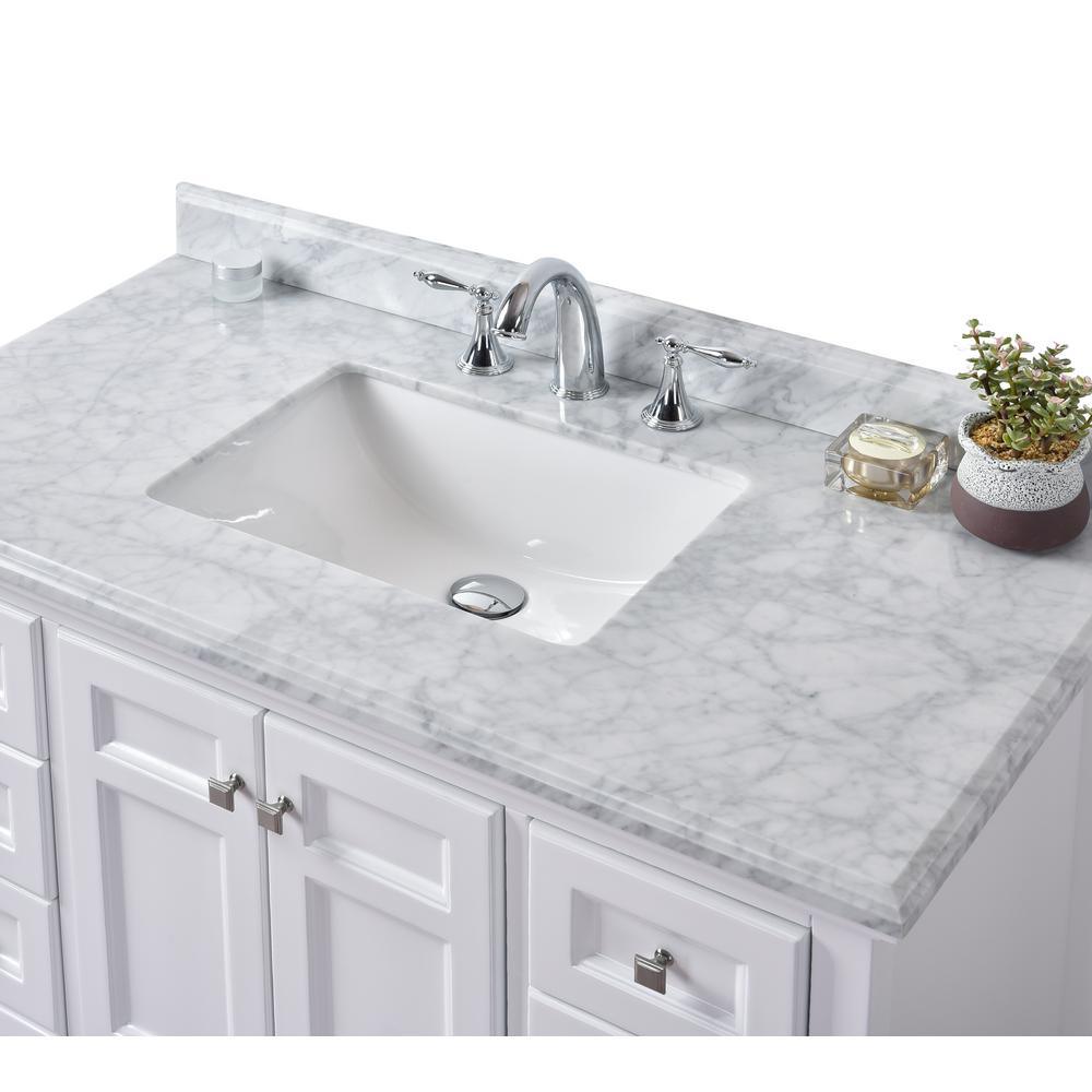 Luz 42 in. Single Bath Vanity in White with Marble Vanity Top in Carrara White with White basin