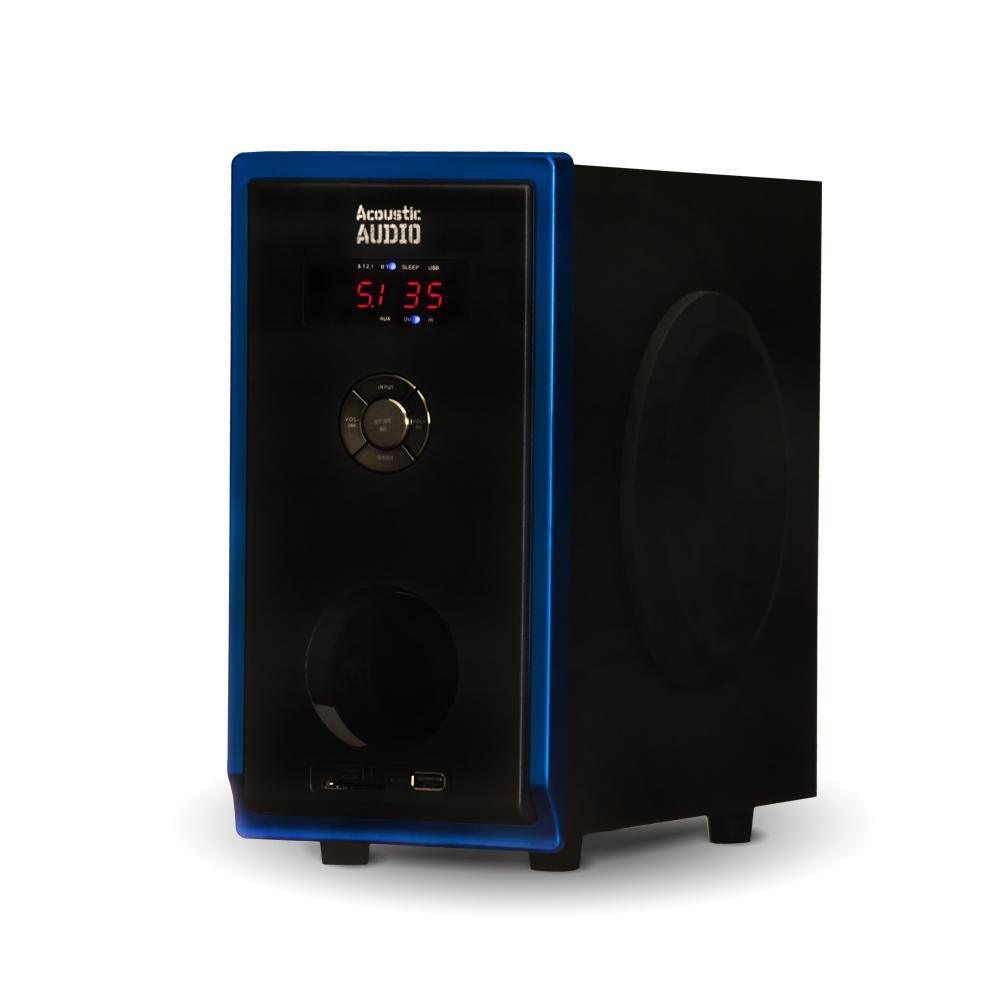 • Acoustic audio 5102 Bluetooth powered 5.1 multimedia home theater speaker system, 800-Watt system power, 40Hz - 20 kHz frequency response, built in Bluetooth receiver, 5 discrete independent channel inputs and outputs, integrated audio amplifier