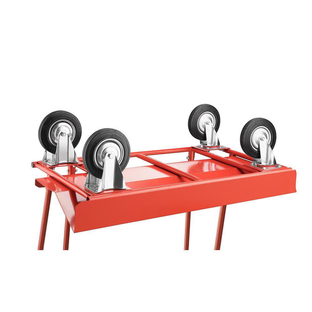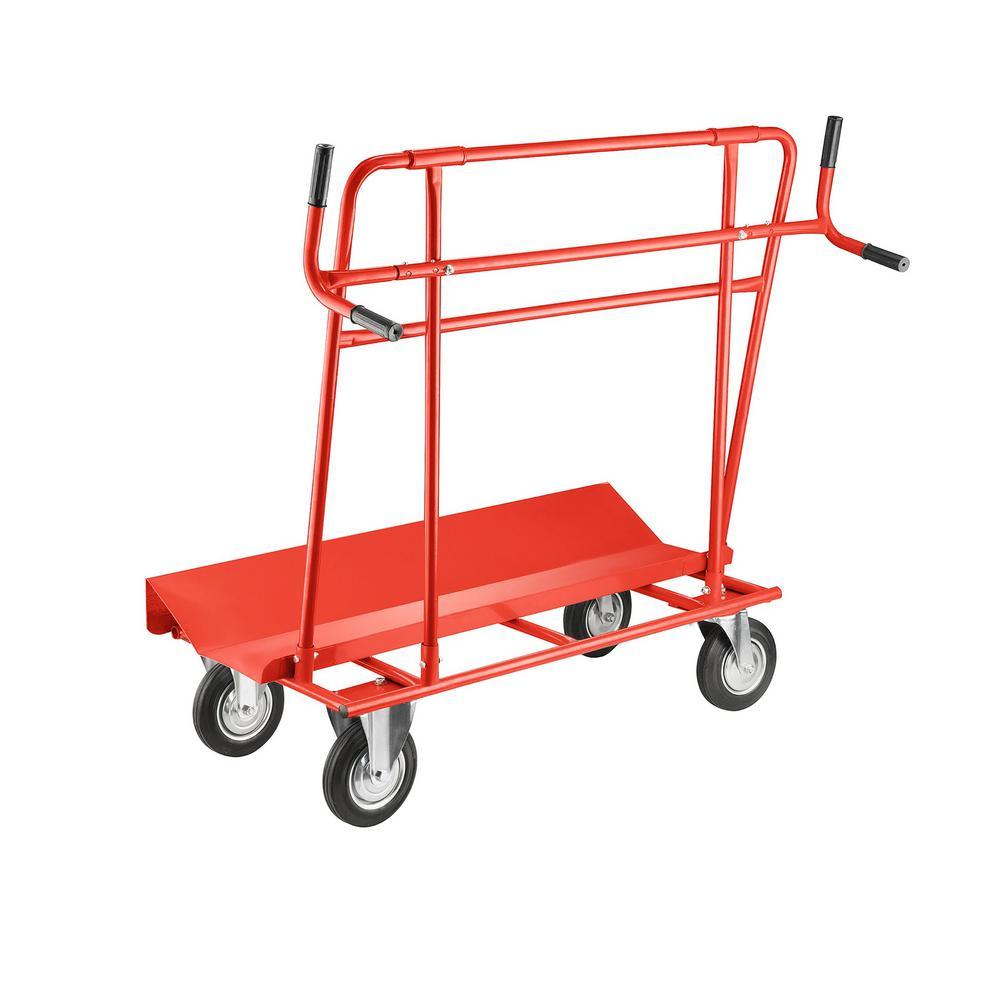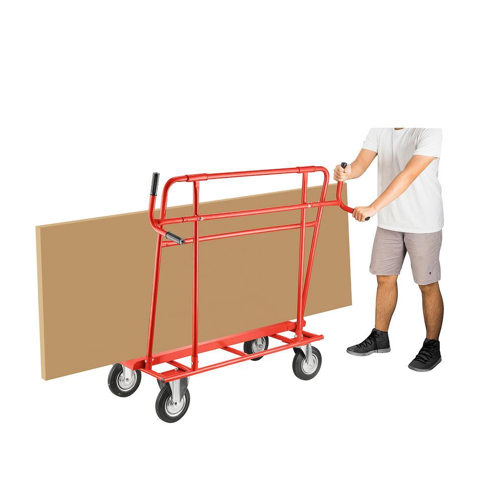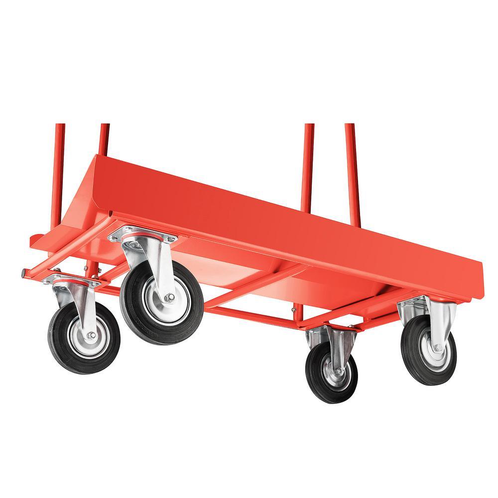 These commercial grade carts feature top grade steel, oversize casters, and easy assembly. When you have a lot of wall board, drywall, paneling, or plywood to move in and out of tight spots, this is the cart to have on your team. You can load up to 1600 lbs. on this commercial grade cart. We are talking heavy-duty 8-wheels that will make this the smoothest rolling cart even when fully loaded.