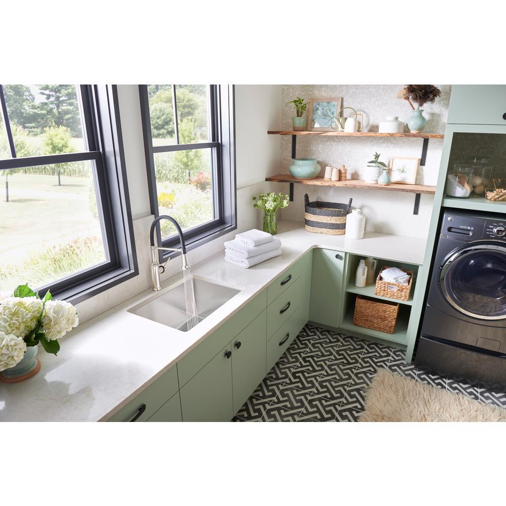 Every room in the home deserves to look its best, including the laundry or mud room. BLANCO has designed its laundry sinks with features designed to specifically address the unique needs of cleaning beyond the kitchen. versatile Quatrus R15 is crafted with softer radius corners, maintaining its beauty, yet adding an element of effortlessness. Its generous corners for an easier-to-clean surface so that you can spend more time enjoying and less time cleaning. The bowl is designed for scrubbing, soaking and rinsing. With designer appeal, exceptional engineering and high-end features, the QUATRUS R15 reflects all of things you love about modern - at a price within reach. The new designs and functionality that meets the everyday needs of the most practical, yet beautiful laundry rooms. Made from the highest quality 18-gauge stainless steel and complete with a stunning satin finish, the show-stopping R15 offers design versatility. Our sinks feature a generous 12" depth, dual mount installation (undermount or top mount for added versatility), and special accessories to keep cleaning tools handy and organized. Our laundry sinks will handle even the toughest cleaning jobs - without the drama, or the staining.