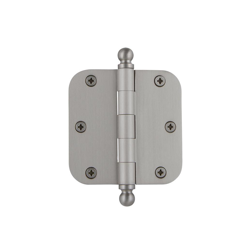 Nostalgic Warehouse 3.5 in. Antique Pewter Ball Tip Residential Hinge with 5/8 in. Radius Corners