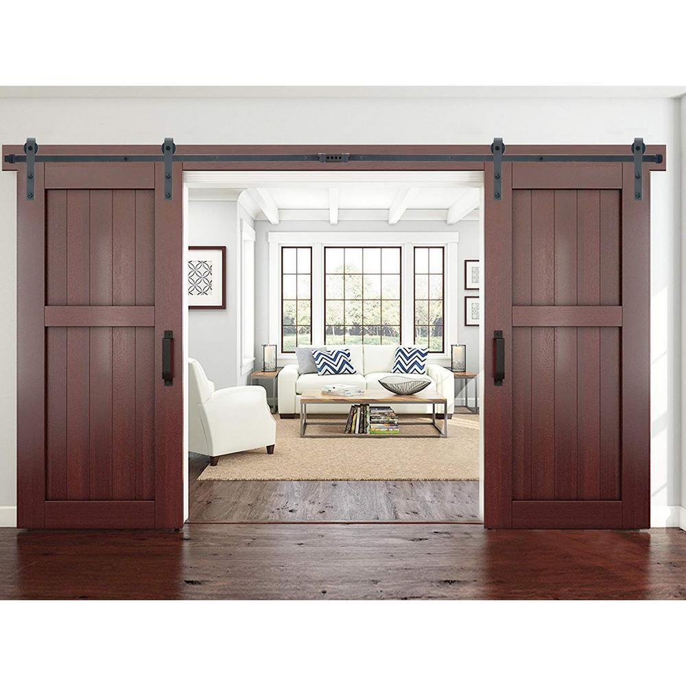 Modern European Style 144 in. Matte Black Sliding Door Hardware (2-Set)