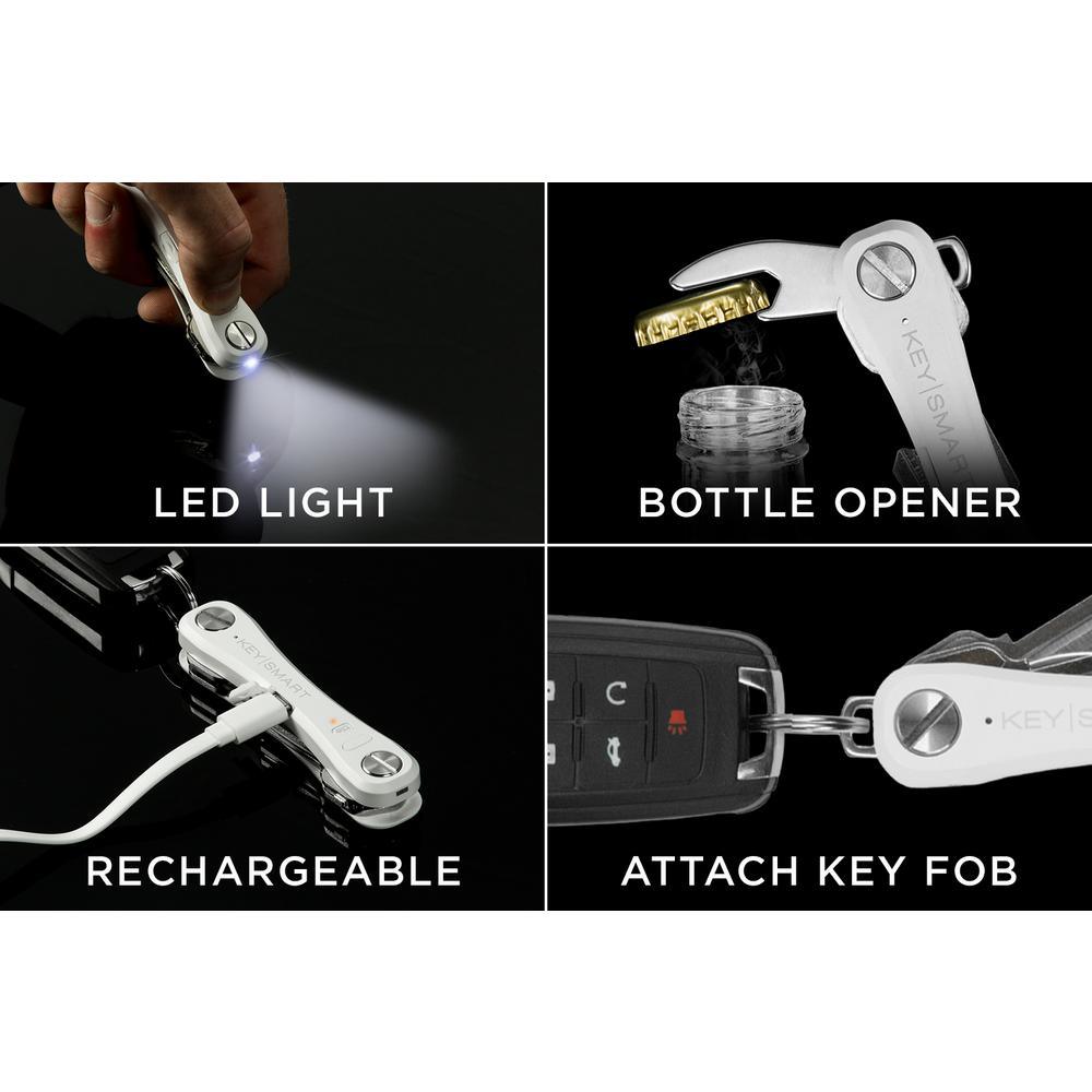 Find your keys with your phone using Tile smart location tracking. Built in LED flashlight. Unique 'S' design allows you to hold between 2- 10 keys.