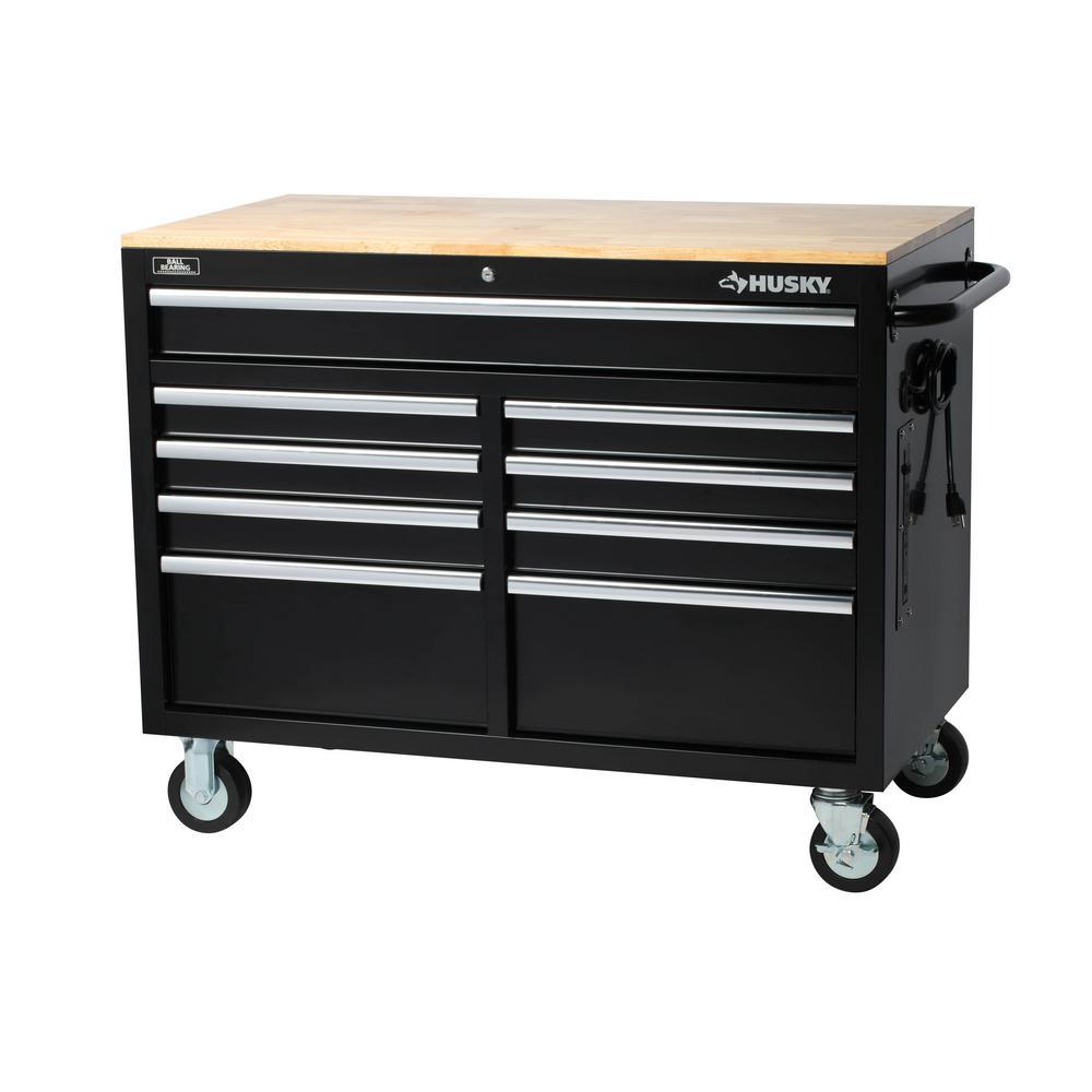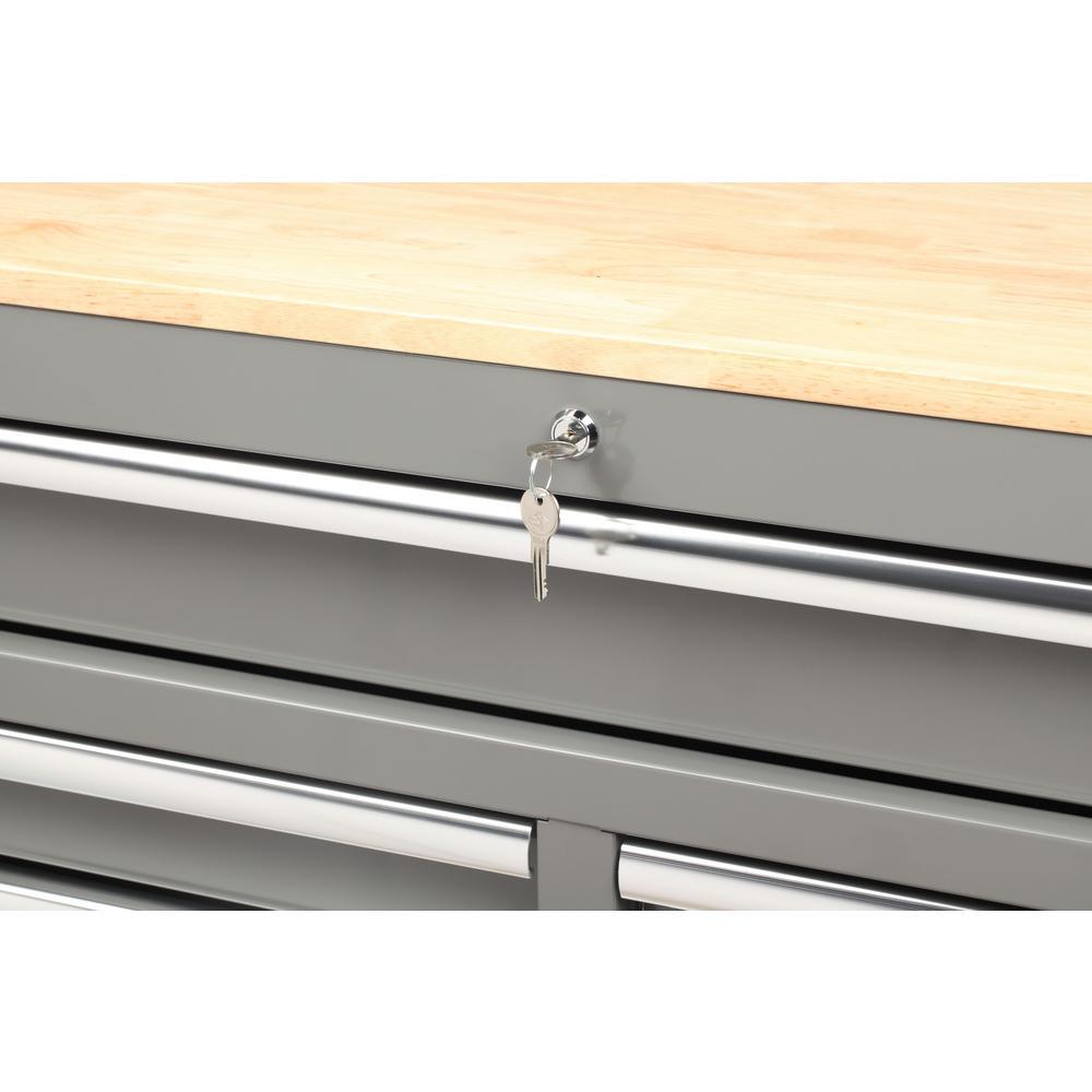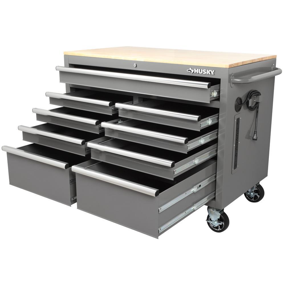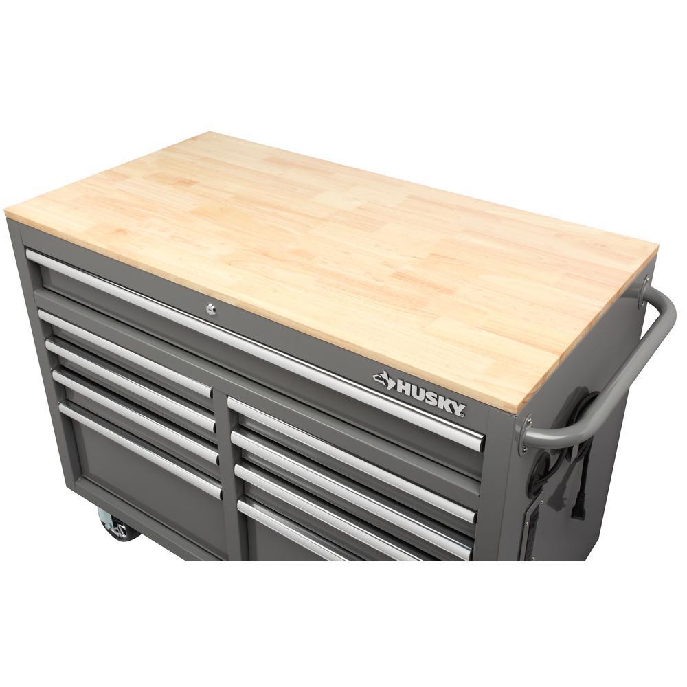 46 in. W 9-Drawer, Deep Tool Chest Mobile Workbench in Gloss Gray with Hardwood Top
