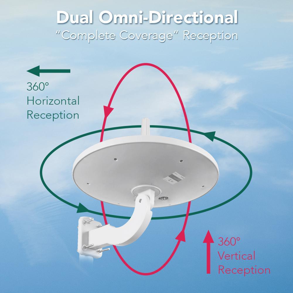- Say goodbye to endless adjustment, achieve signal 360° horizontal and 360° vertical reception, no need to adjust the antenna installation direction any more, assuring you more channel reception and less blind spots, like CBS, NBC, ABC, Fox, the CW and PBS, etc.