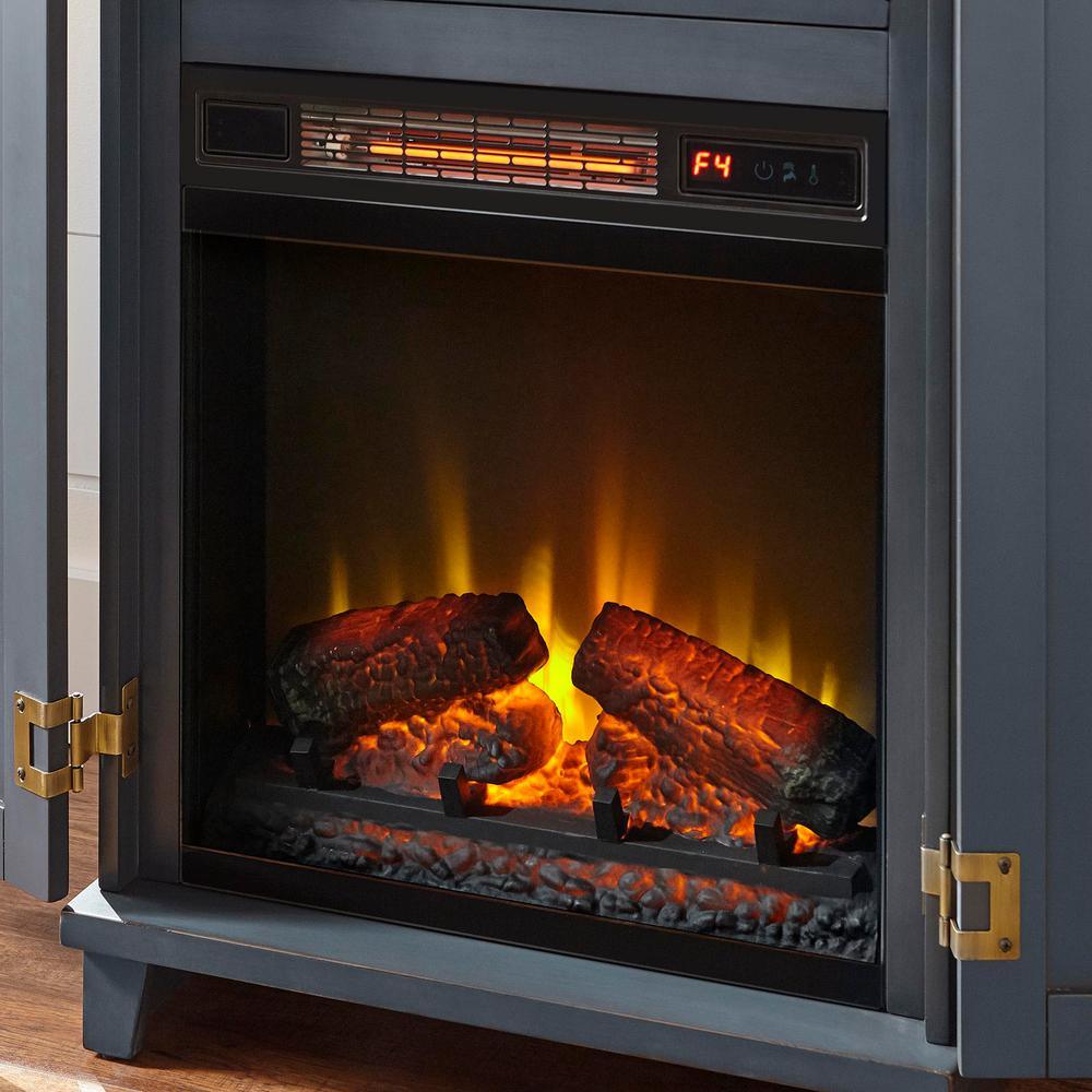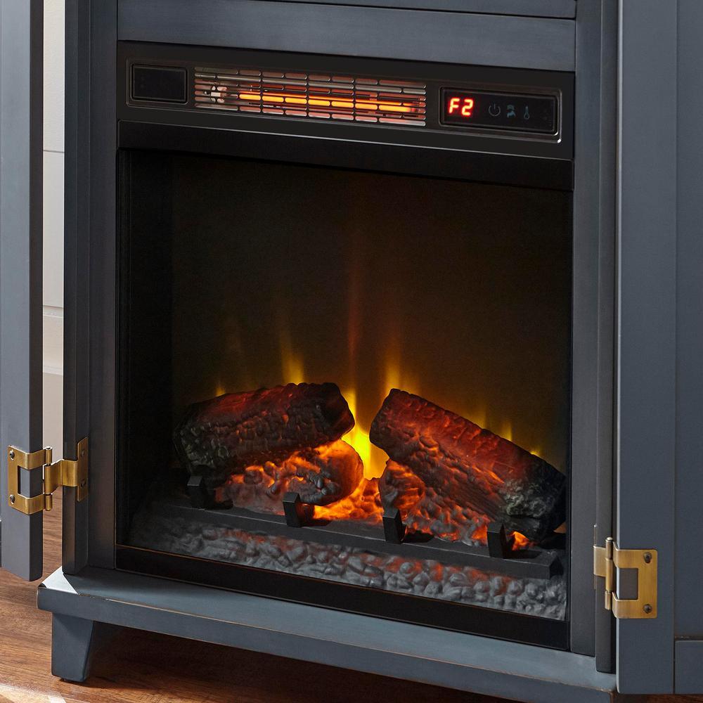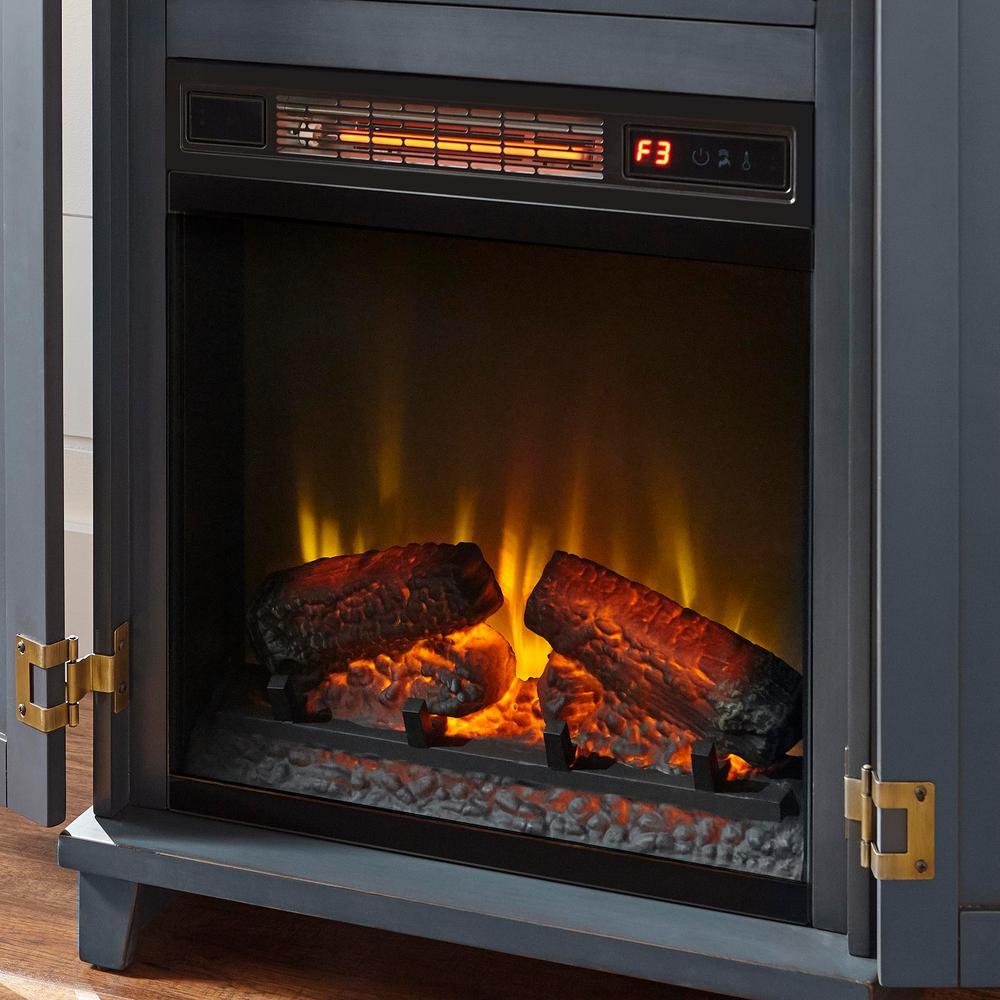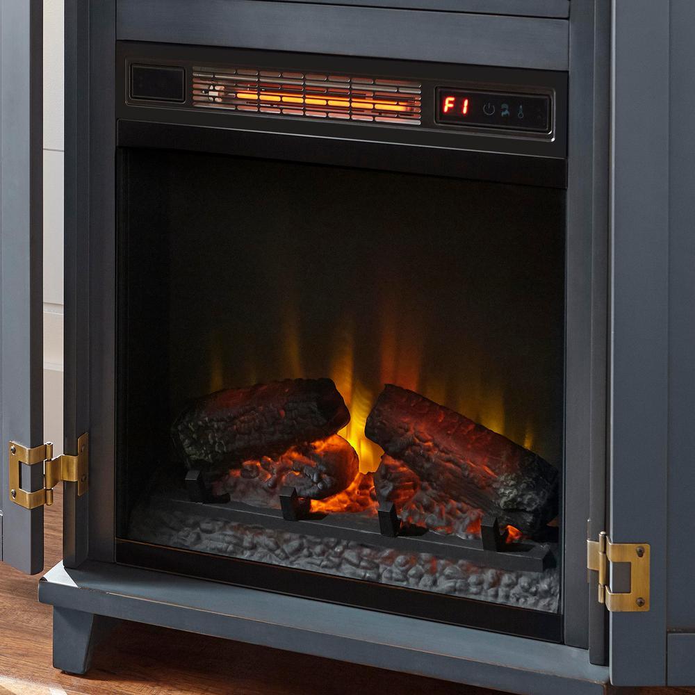 This electric fireplace is sure to create a warm and welcoming environment in your home. Double doors with beautiful decorative mullions open 270° to reveal the 19 in. infrared quartz electric fireplace with Spectrafire flame effect technology. Infrared heating technology keeps your home comfortable by maintaining natural humidity in the air, all while providing you with supplemental zone heating for up to 1,000 sq. ft. Brilliant Spectrafire flames showcase 3 blue and 3 amber effect options to create your ideal fire, displayed on a realistic log set and ember bed. Since you can enjoy your electric fireplace with or without heat, it can be used all year long for beautiful ambiance and optional warmth. Change the settings easily using the control panel on the unit or with the included remote control.