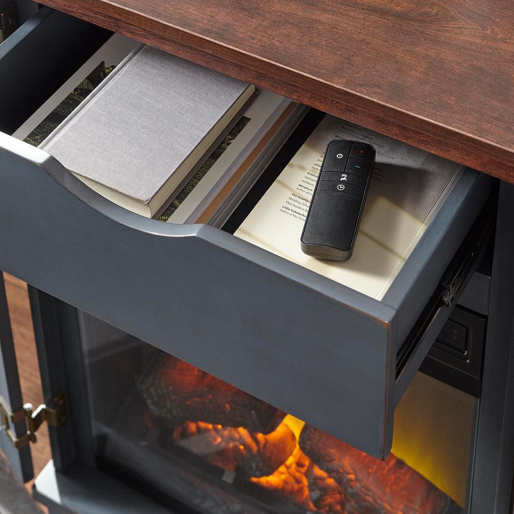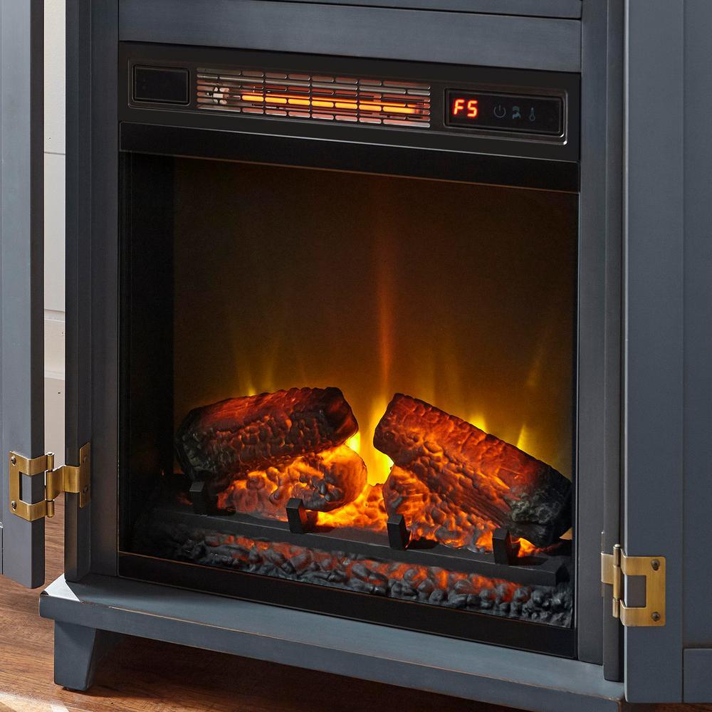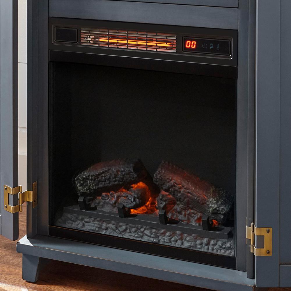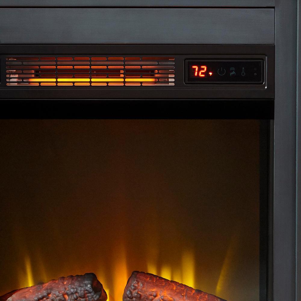 This electric fireplace is sure to create a warm and welcoming environment in your home. Double doors with beautiful decorative mullions open 270° to reveal the 19 in. infrared quartz electric fireplace with Spectrafire flame effect technology. Infrared heating technology keeps your home comfortable by maintaining natural humidity in the air, all while providing you with supplemental zone heating for up to 1,000 sq. ft. Brilliant Spectrafire flames showcase 3 blue and 3 amber effect options to create your ideal fire, displayed on a realistic log set and ember bed. Since you can enjoy your electric fireplace with or without heat, it can be used all year long for beautiful ambiance and optional warmth. Change the settings easily using the control panel on the unit or with the included remote control.