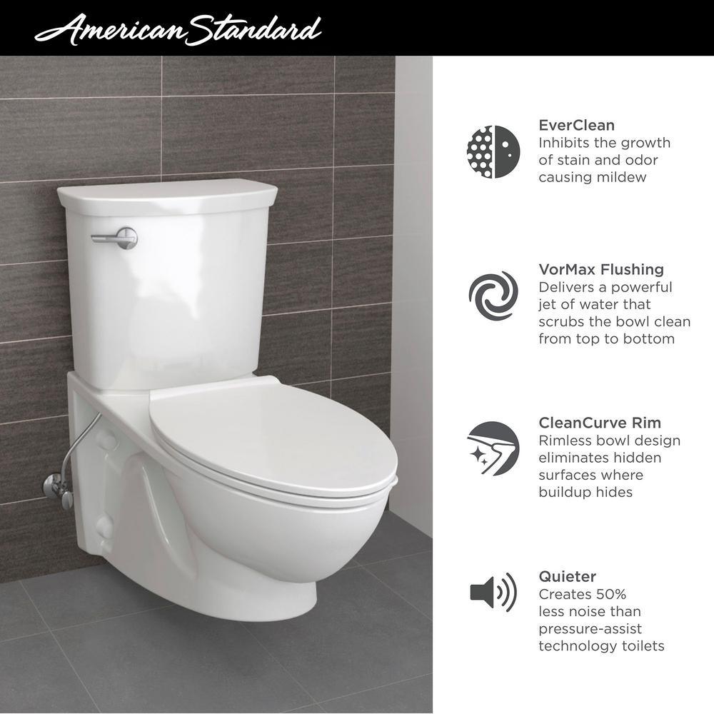 The Glenwall VorMax Wall-Hung Toilet from American Standard features the powerful VorMax flushing technology. The VorMax unparelleled scrubbing action circulates water around the bowl from top to bottom, leaving it twice as clean as a conventional toilet while using a water-conserving 1.28 gal. of water. The Glenwall VorMax Wall-Hung Toilet has a 50% quieter flush than pressure-assist configurations and ensures the complete removal of paper seat covers. Features CleanCurve Rim and EverClean antimicrobial surface.